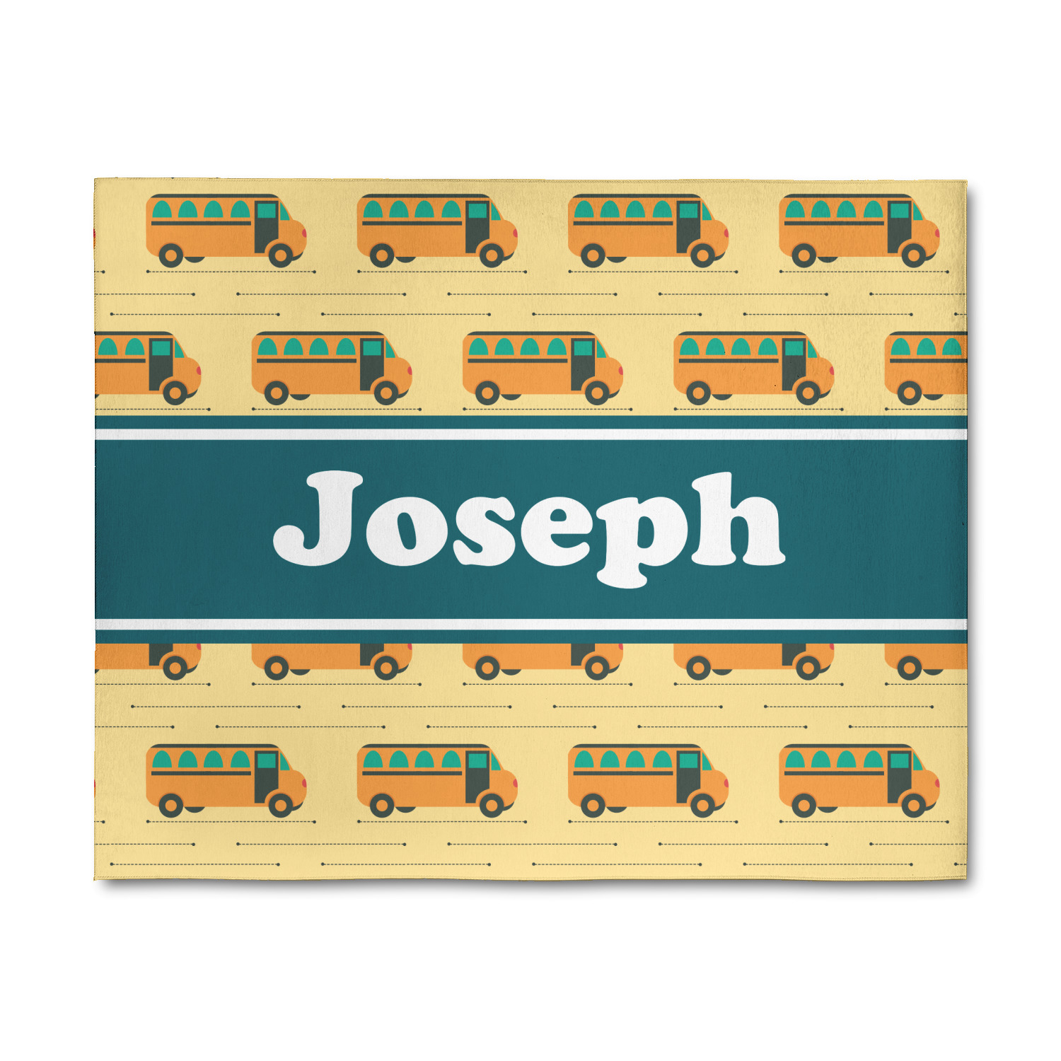 Filled with different shades of yellow, this design will be a cheery one to take to school on their first day! The school buses almost seem like they are in motion on the light yellow background. The teal ribbon is a nice complimentary color and really pops on top of the yellows.