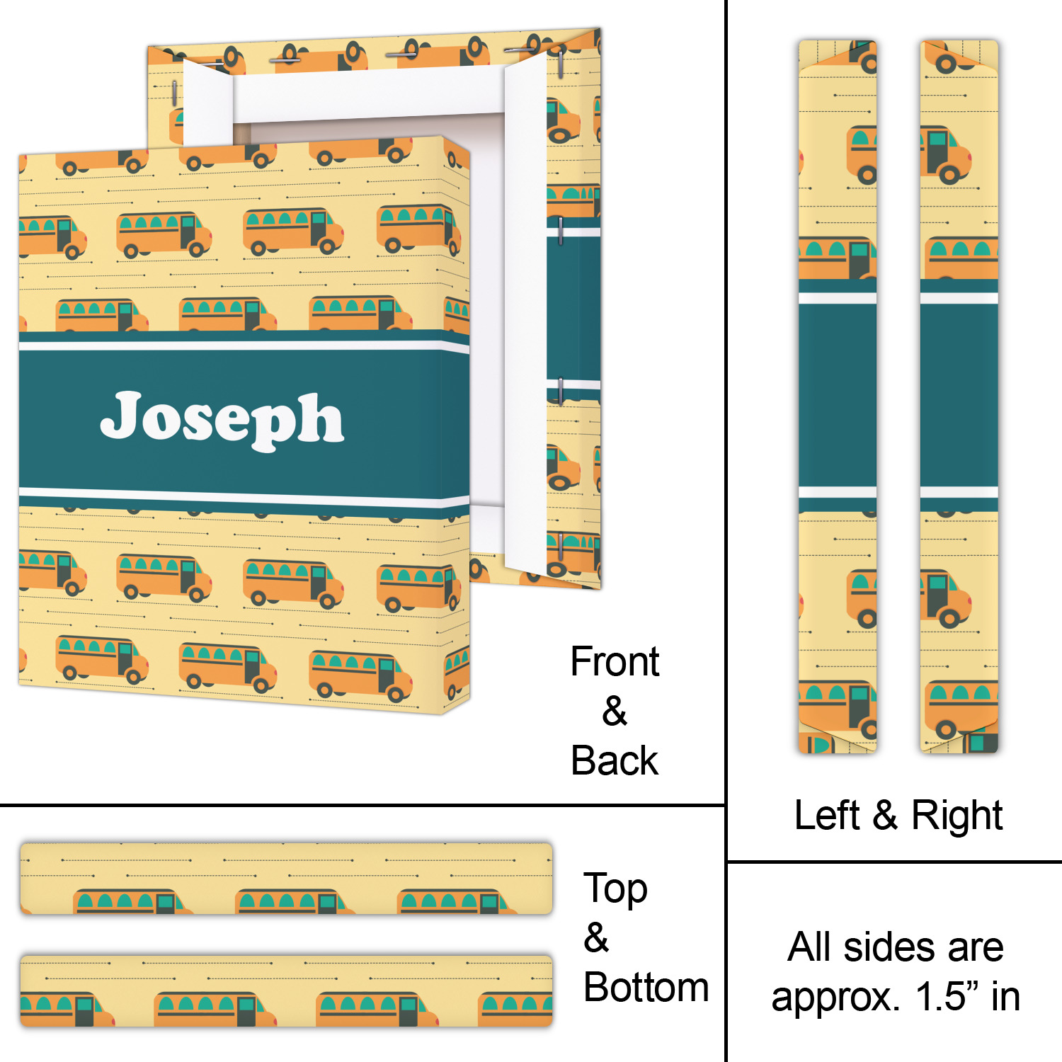 Filled with different shades of yellow, this design will be a cheery one to take to school on their first day! The school buses almost seem like they are in motion on the light yellow background. The teal ribbon is a nice complimentary color and really pops on top of the yellows.