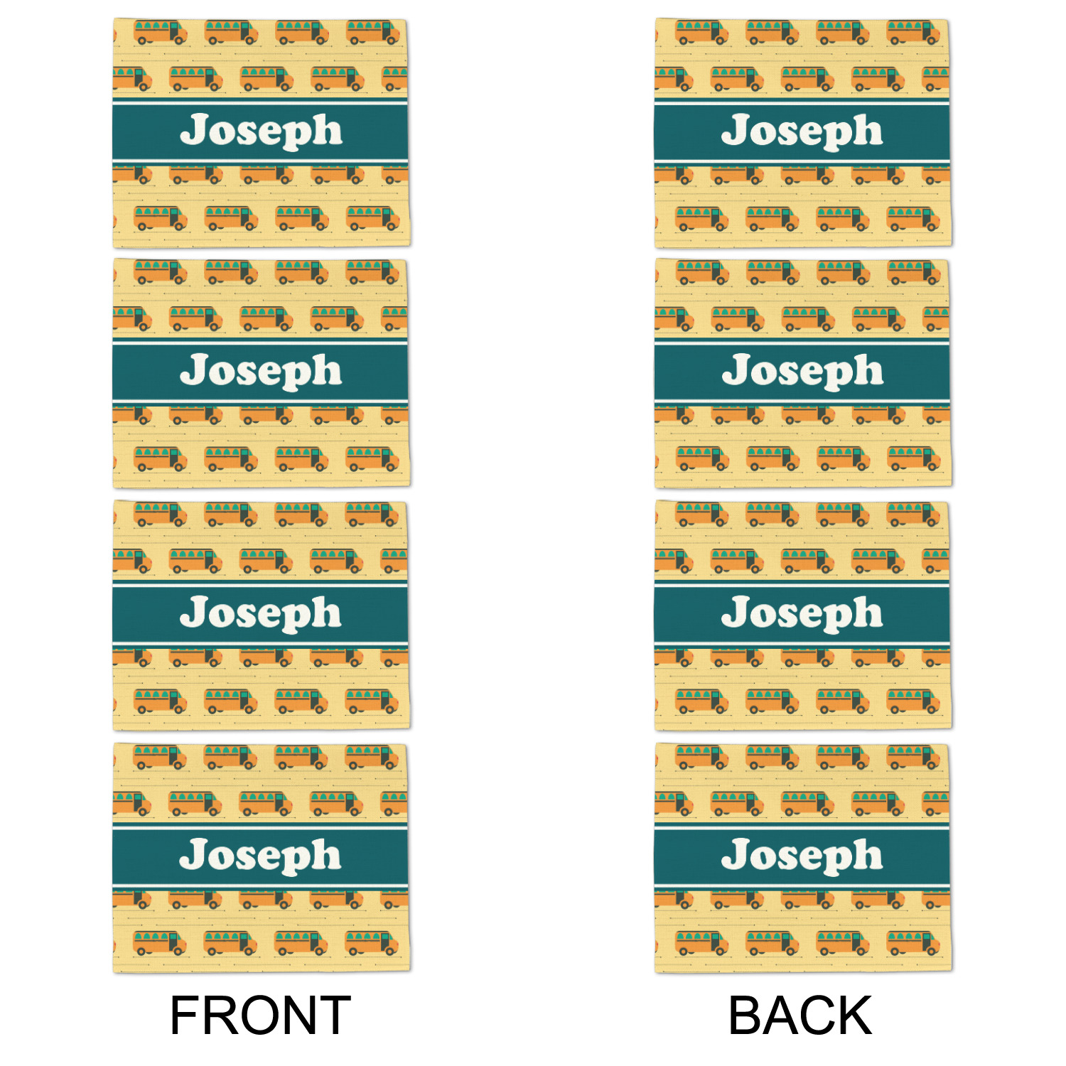 Filled with different shades of yellow, this design will be a cheery one to take to school on their first day! The school buses almost seem like they are in motion on the light yellow background. The teal ribbon is a nice complimentary color and really pops on top of the yellows.