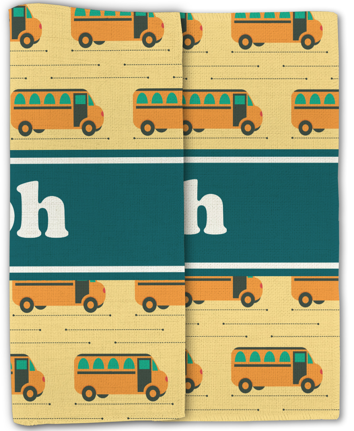 Filled with different shades of yellow, this design will be a cheery one to take to school on their first day! The school buses almost seem like they are in motion on the light yellow background. The teal ribbon is a nice complimentary color and really pops on top of the yellows.