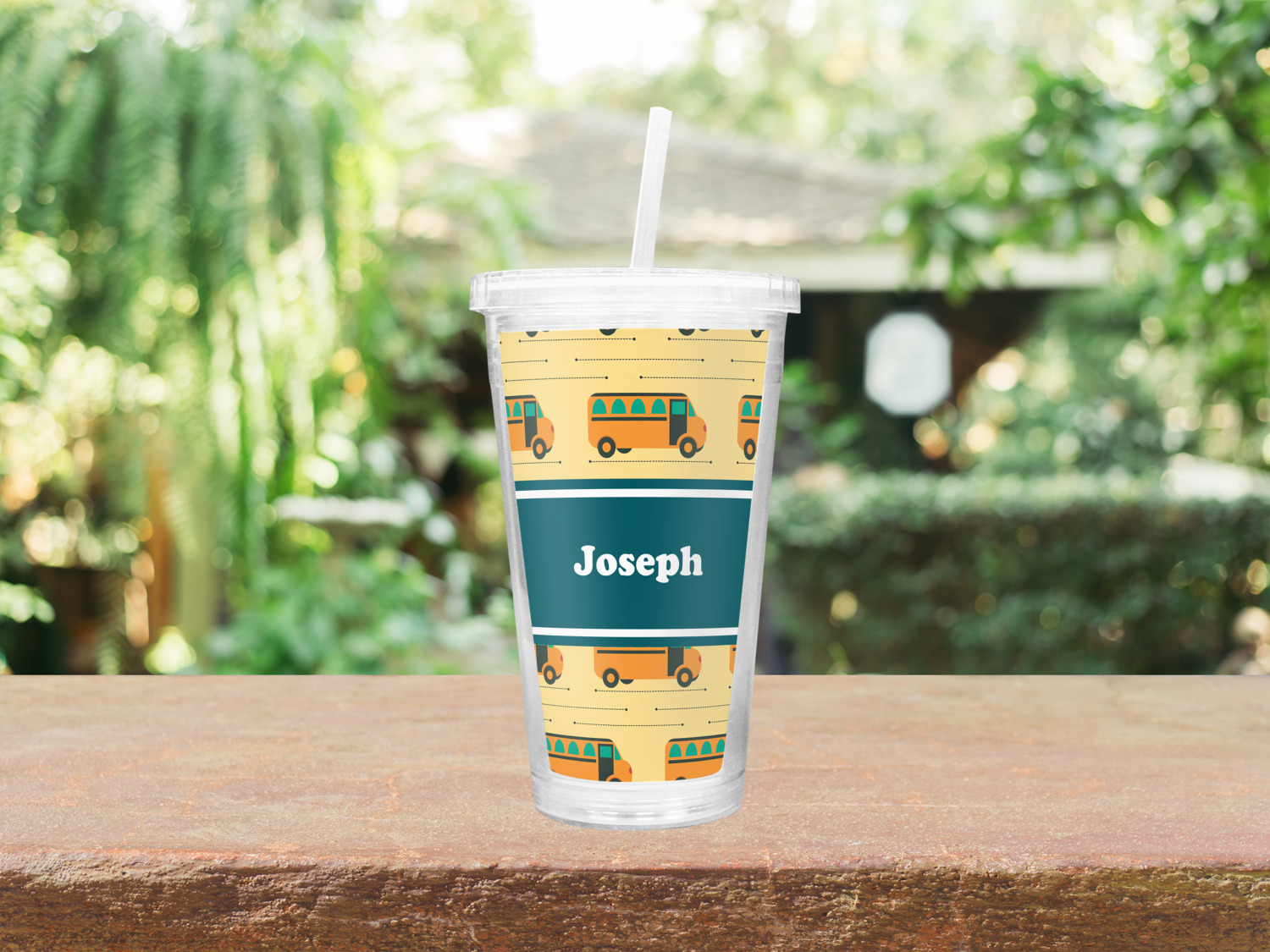 These BPA free tumblers with their double walls keep your drink cold and will not sweat on the outside; they have a clear acrylic top and a reusable straw with a ring around the bottom to keep the straw from falling out.