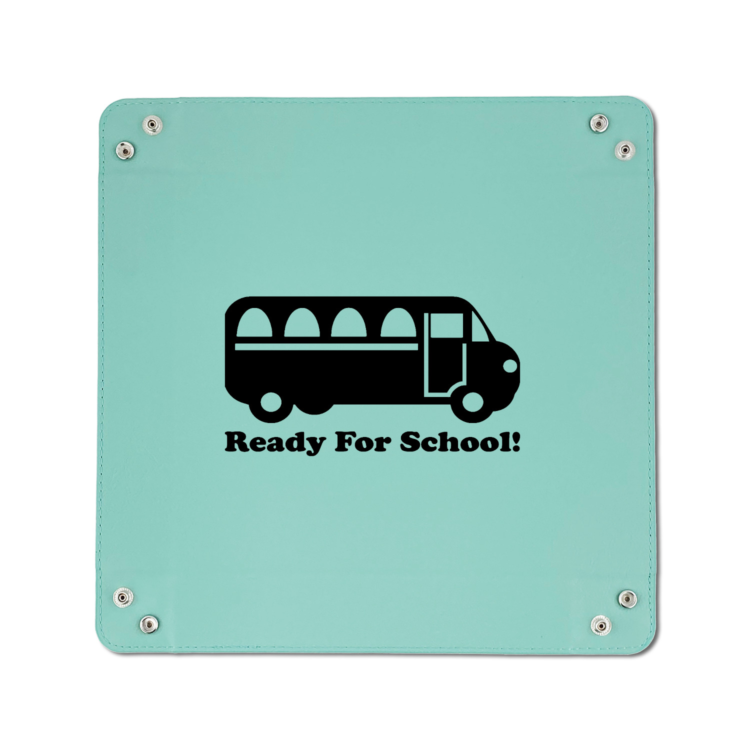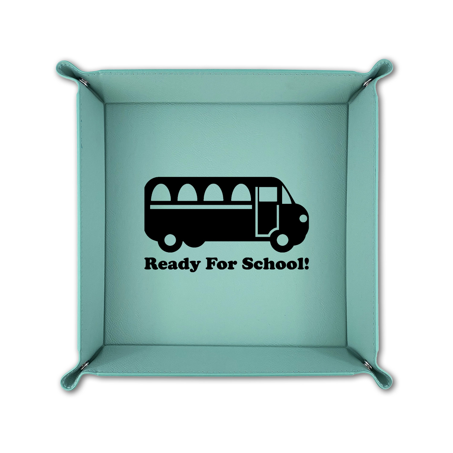 Filled with different shades of yellow, this design will be a cheery one to take to school on their first day! The school buses almost seem like they are in motion on the light yellow background. The teal ribbon is a nice complimentary color and really pops on top of the yellows.
