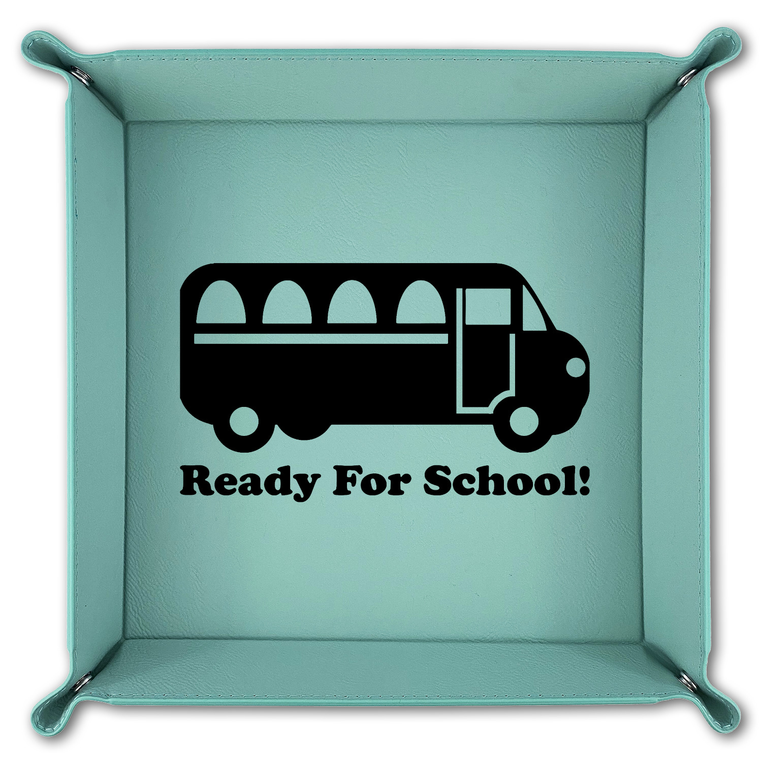 Filled with different shades of yellow, this design will be a cheery one to take to school on their first day! The school buses almost seem like they are in motion on the light yellow background. The teal ribbon is a nice complimentary color and really pops on top of the yellows.