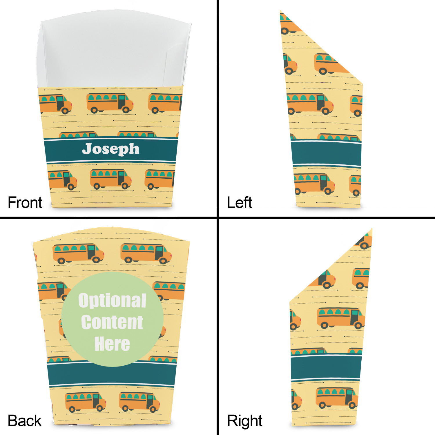 These favor boxes are printed in full color on quality cardstock - so coordinating the french fry favor boxes to match your event's themes or colors should be a breeze. You can upload your own design including artwork, logos or photos