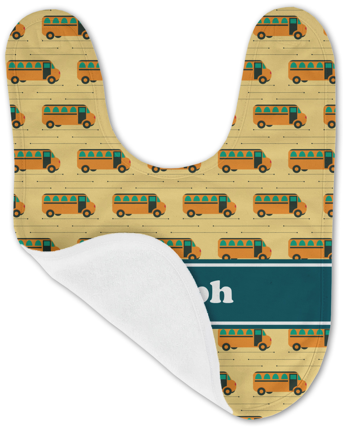 Made of soft polyester, each customizable bib hugs comfortably around the neck to catch every drip and drool. Each bib design is printed with baby-safe ink and finished with a secure stitch pattern and velcro clasp. We carry two customizable bib styles -Microfiber Velour and Jersey Knit.