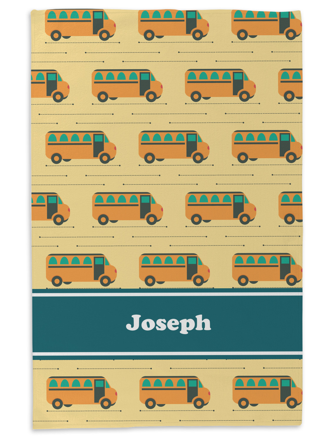 Filled with different shades of yellow, this design will be a cheery one to take to school on their first day! The school buses almost seem like they are in motion on the light yellow background. The teal ribbon is a nice complimentary color and really pops on top of the yellows.