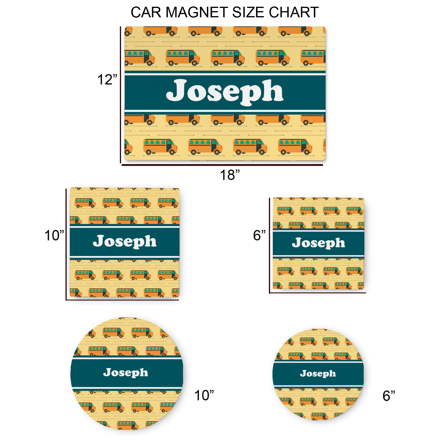 Your personalized large car magnet measures at 18 inches wide by 12 inches tall. They are 1 millimeter thick, which is considered, within the industry, as the ideal thickness for automobile magnets. The magnetic car decals will adhere to any smooth, ferrous metal surface of your cars body, such as the trunk door or a side panel.