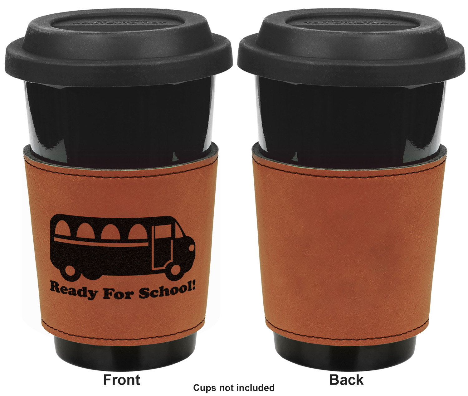 This cup sleeve is made from a suave, cognac-brown leatherette and finished with an intricate, black stitch. The interior of this can sleeve is fabricated from a thin foam material to help insulate your mug's contents. The sleeve is specifically made to suit tapered glasses or mugs, so the top's diameter is 3.5 inches, while the bottom's diameter is 2.75 inches. Your customized design will be laser engraved into the leatherette, leaving behind crisp, black imprint. With these products, we provide you with the option of engraving the front and back, or the front only.