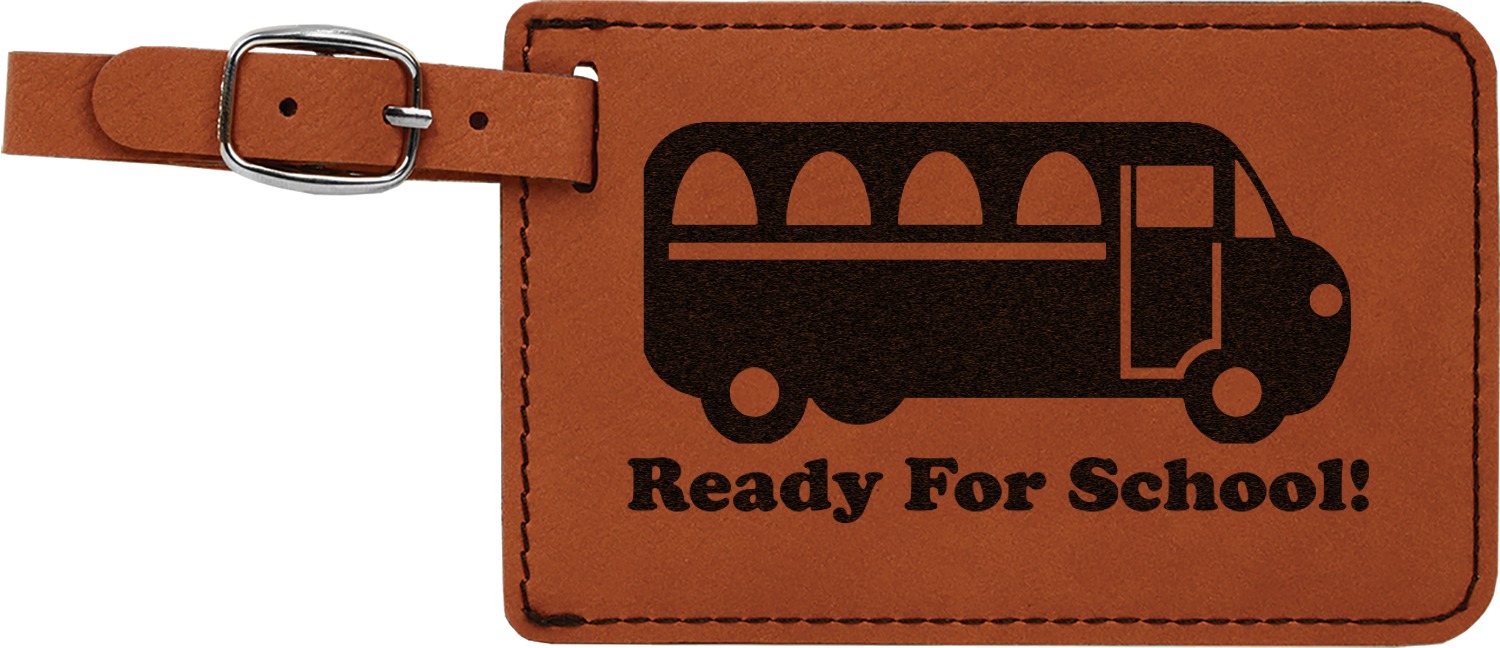 This luggage tag will surely be able to get you started in having all the right tools for traveling. It is made of a beautiful leatherette material that is a nice shade of cognac brown. The front of the tag is where your design goes. The sturdy black stitching gives your design an extra pop and gives the tag extra durability. The back of the tag has a clear vinyl window where you can slip in your address card. The tag comes with a great little buckle strap that you can easily use to clip to your suitcase. The tag itself measures at approximately 5.5"W x 4.25"H.