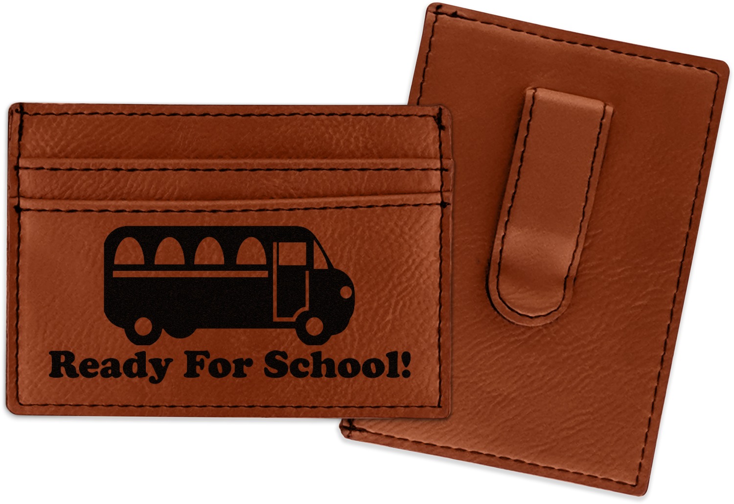 Made from a smooth brown leatherette material, these money clip wallets are the perfect accessory. They measure at approximately 4" x 2.75". On one side there is a money clip where you can slip in your cash. On the other side are three card slots for an ID and credit card or two. The money clip wallet will be laser engraved with your design on the side with the credit card slots. The graphic will come out as a black color.