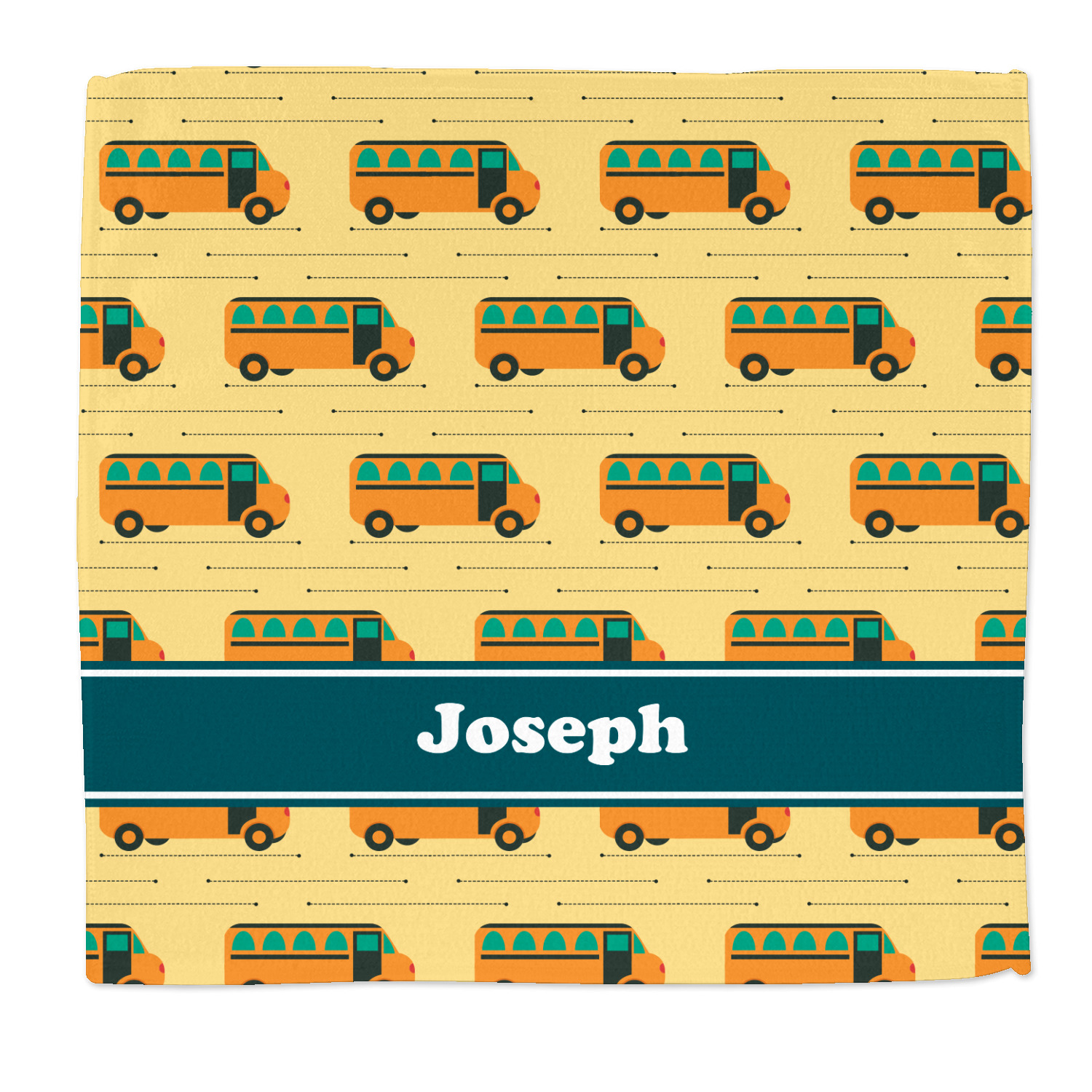 Filled with different shades of yellow, this design will be a cheery one to take to school on their first day! The school buses almost seem like they are in motion on the light yellow background. The teal ribbon is a nice complimentary color and really pops on top of the yellows.