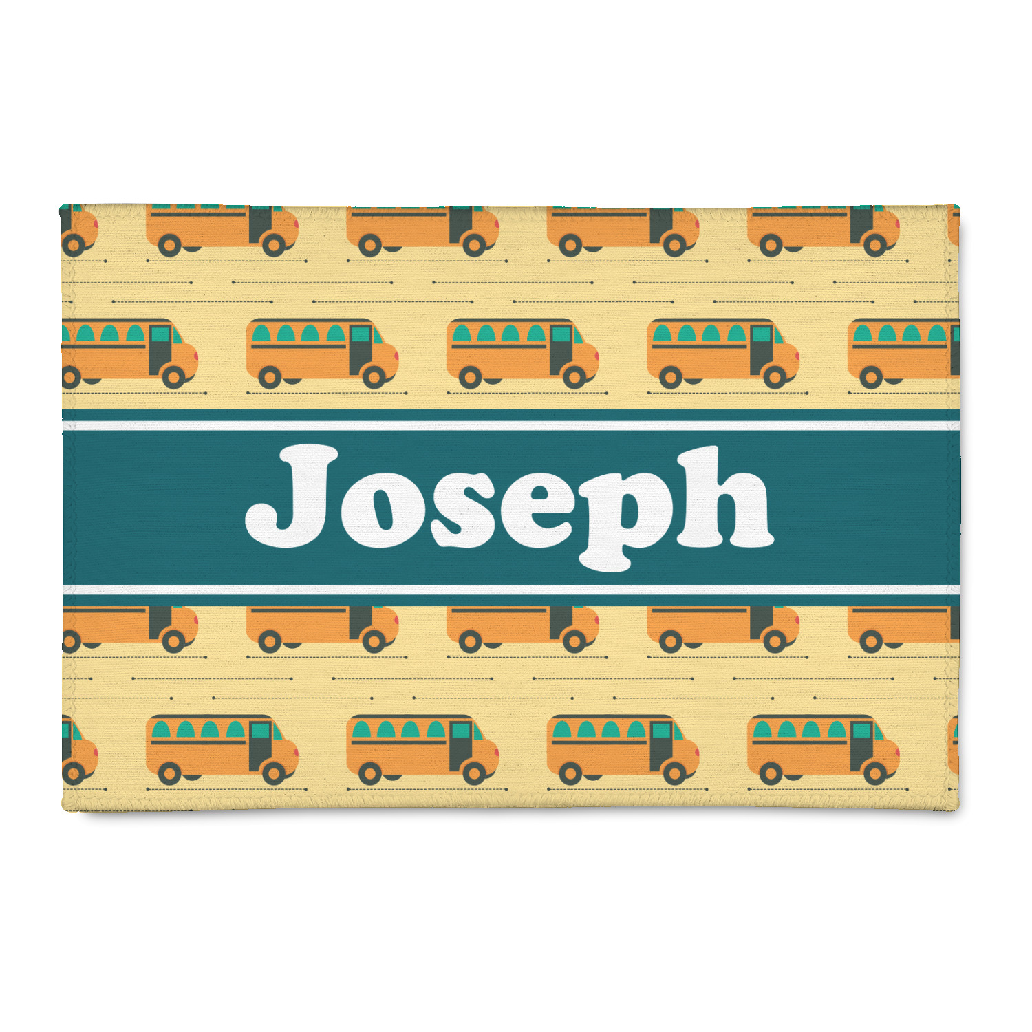 Filled with different shades of yellow, this design will be a cheery one to take to school on their first day! The school buses almost seem like they are in motion on the light yellow background. The teal ribbon is a nice complimentary color and really pops on top of the yellows.