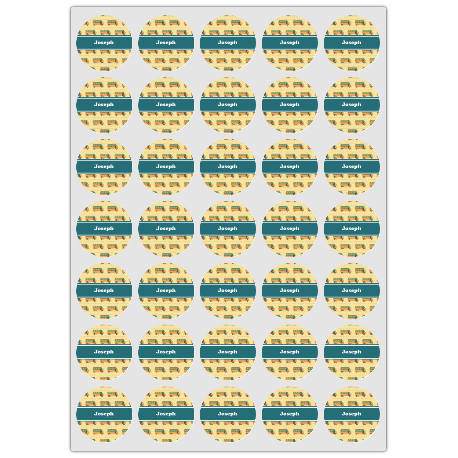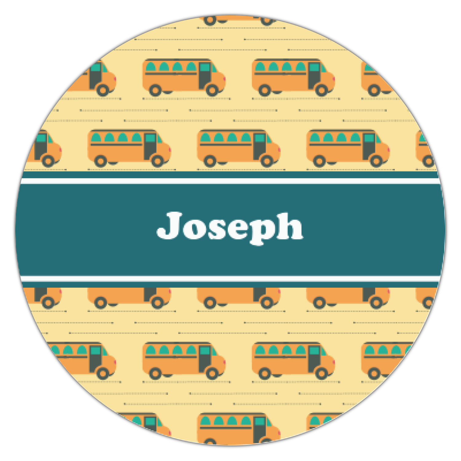 Filled with different shades of yellow, this design will be a cheery one to take to school on their first day! The school buses almost seem like they are in motion on the light yellow background. The teal ribbon is a nice complimentary color and really pops on top of the yellows.