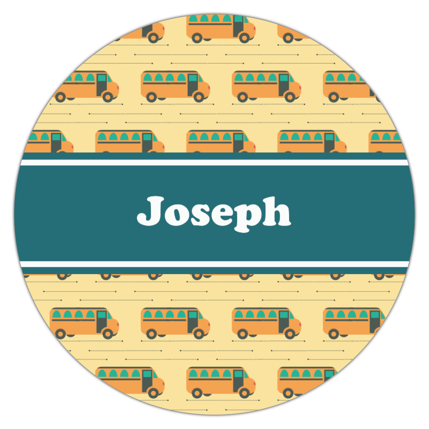 Filled with different shades of yellow, this design will be a cheery one to take to school on their first day! The school buses almost seem like they are in motion on the light yellow background. The teal ribbon is a nice complimentary color and really pops on top of the yellows.