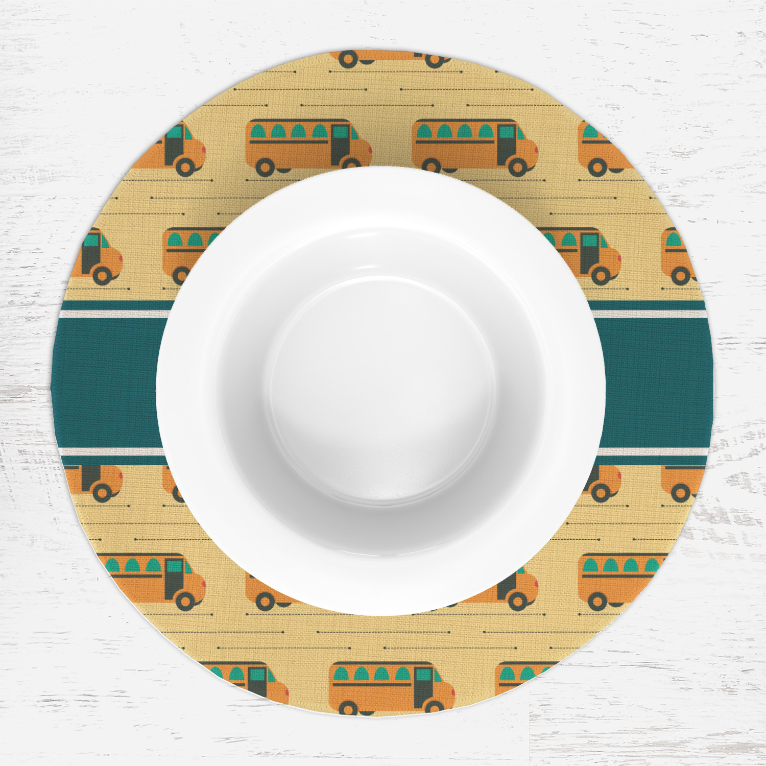 Filled with different shades of yellow, this design will be a cheery one to take to school on their first day! The school buses almost seem like they are in motion on the light yellow background. The teal ribbon is a nice complimentary color and really pops on top of the yellows.
