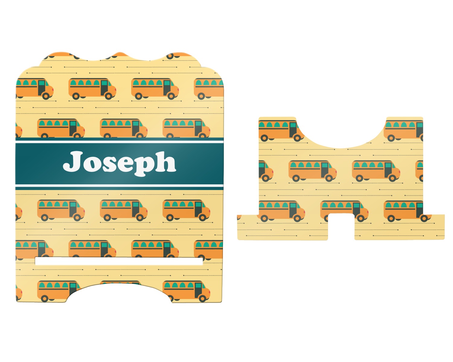 Filled with different shades of yellow, this design will be a cheery one to take to school on their first day! The school buses almost seem like they are in motion on the light yellow background. The teal ribbon is a nice complimentary color and really pops on top of the yellows.