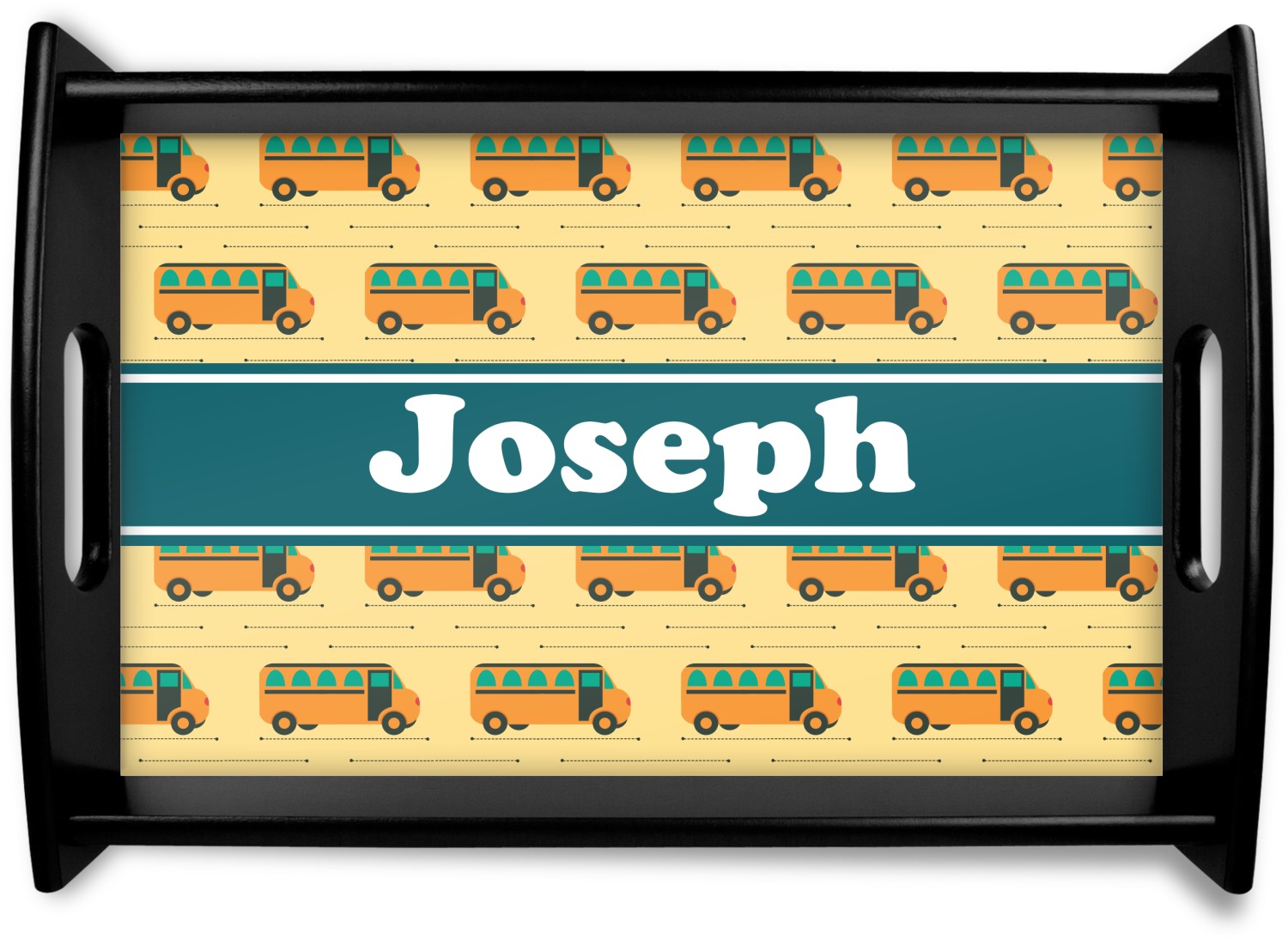 This serving tray with handles features square edges and two rounded sides, creating a very modern look. Each side is fabricated from a beautifully cut, natural wood. The bottom of the interior of the tray displays your customized design in bright, vibrant color. The tray is sold in both a black color and a natural wood look. Each variation of the wood serving tray has two sizes: Small, which is 14" x 10" x 2.25", and Large, which is 19.5" x 13.5" x 2.75".