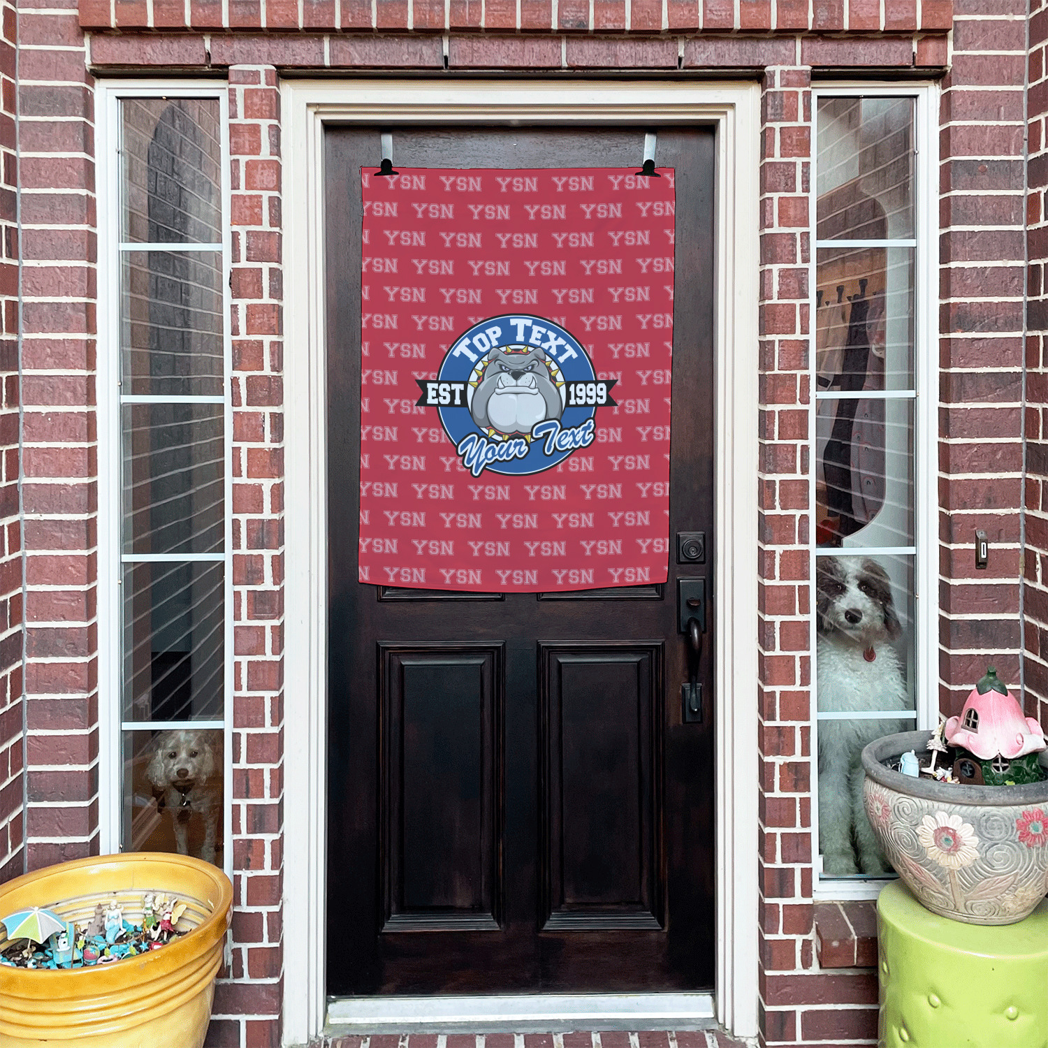 Buy one of our flag poles and brackets (sold separately) to hang the flag from your house or if you would prefer to hang on a door we have door hanging clips as well. Whichever you choose you can display your flag with pride knowing its printed just for you right here in the USA.