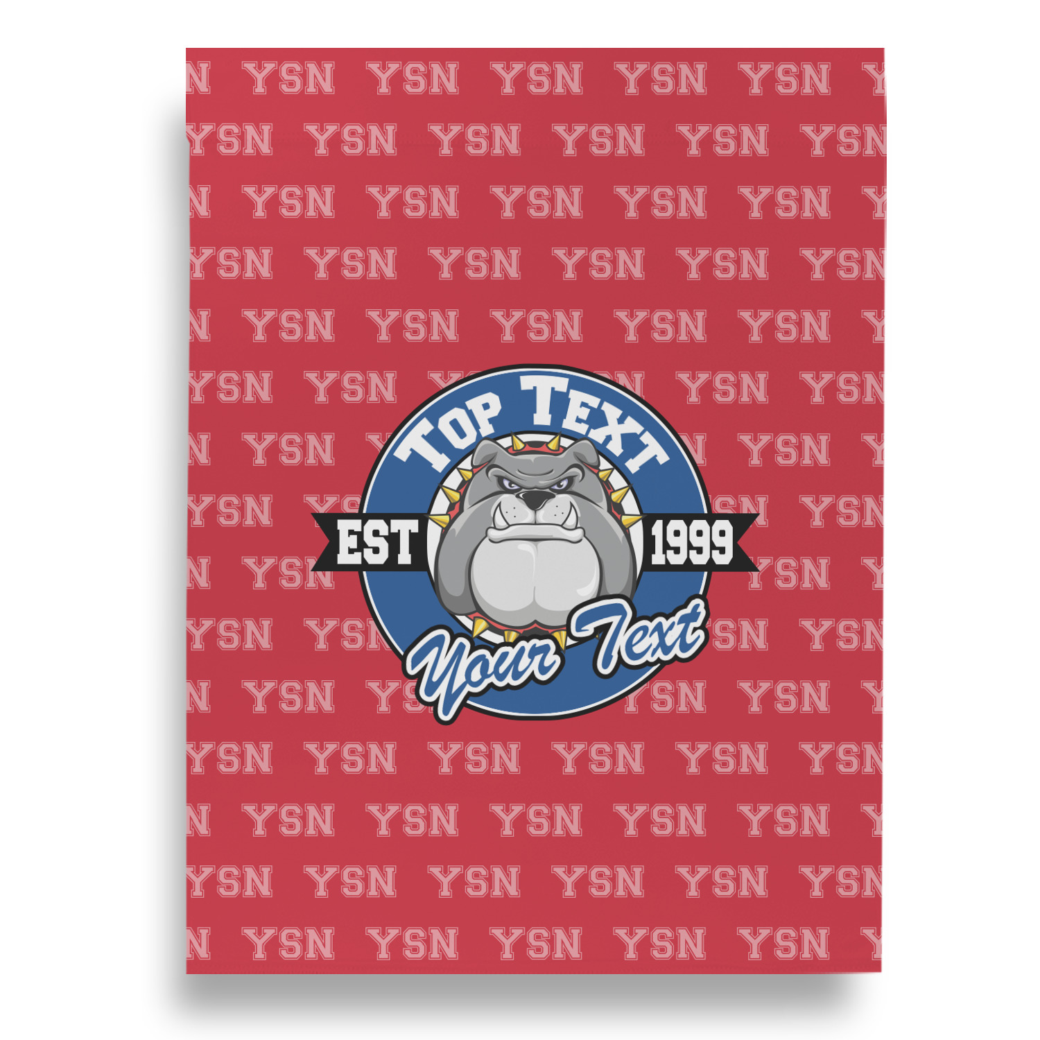 For products that use the background, let's start with the background - we show your school's initials on the red background. You can change the color of the background to your school color, you can change the initial to your school's initial. We also have a background with the mascot, that would look great on this design. And we have 1000's of patterns (e.g.plaid) that you can also use and recolor to your school colors.