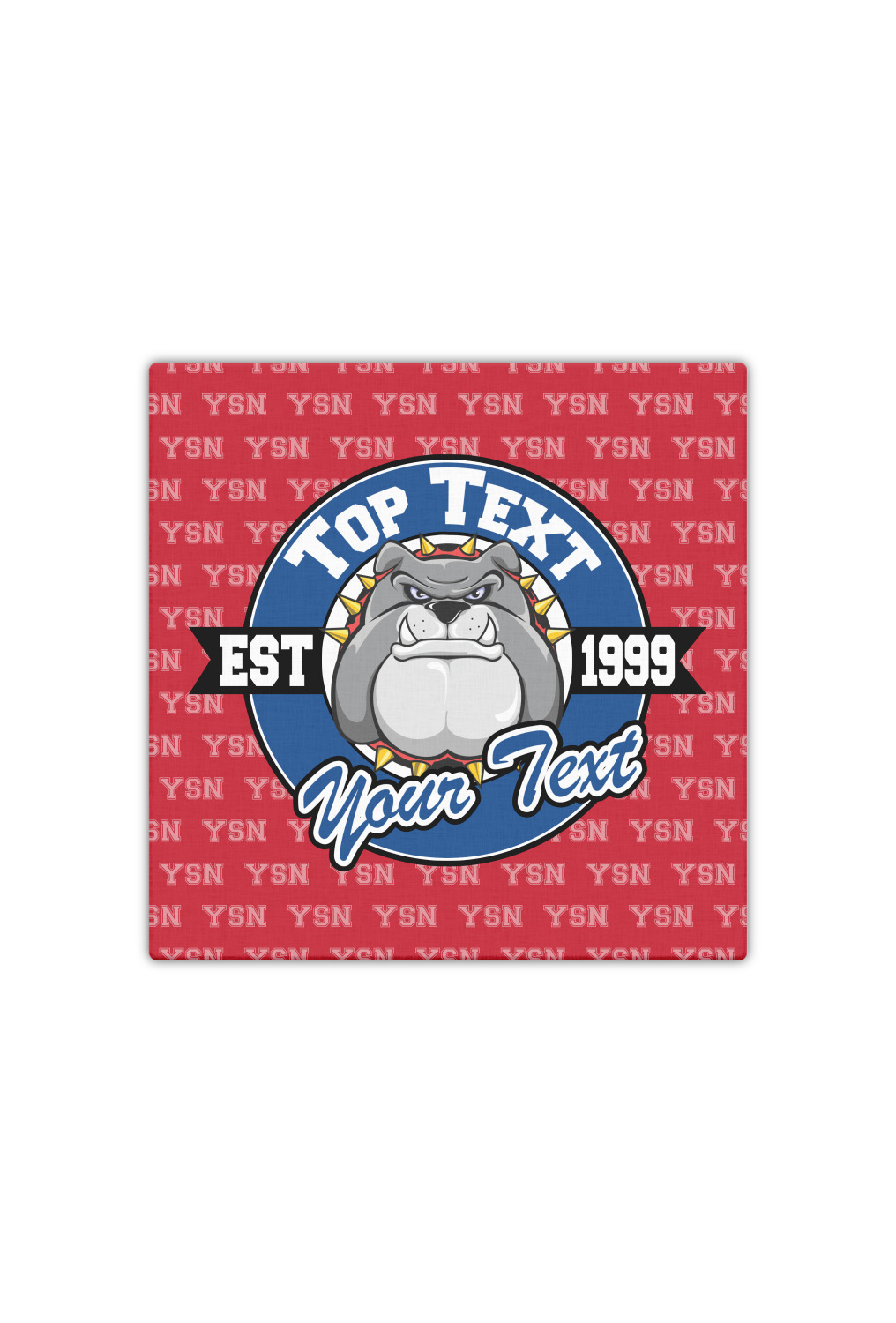 The foreground has a beautiful badge that can be changed to you second school color. There are two locations for the text and one for year your school was established - we recommend putting your High School name on top and your mascot name on the bottom. The mascot face is also customizable. We have 100's of mascots in our system for you to choose from.