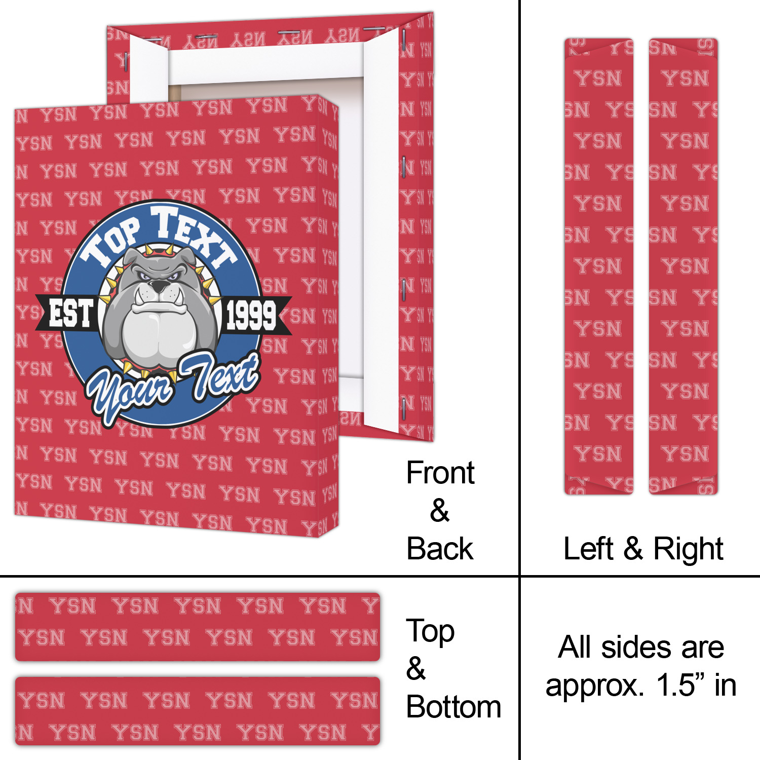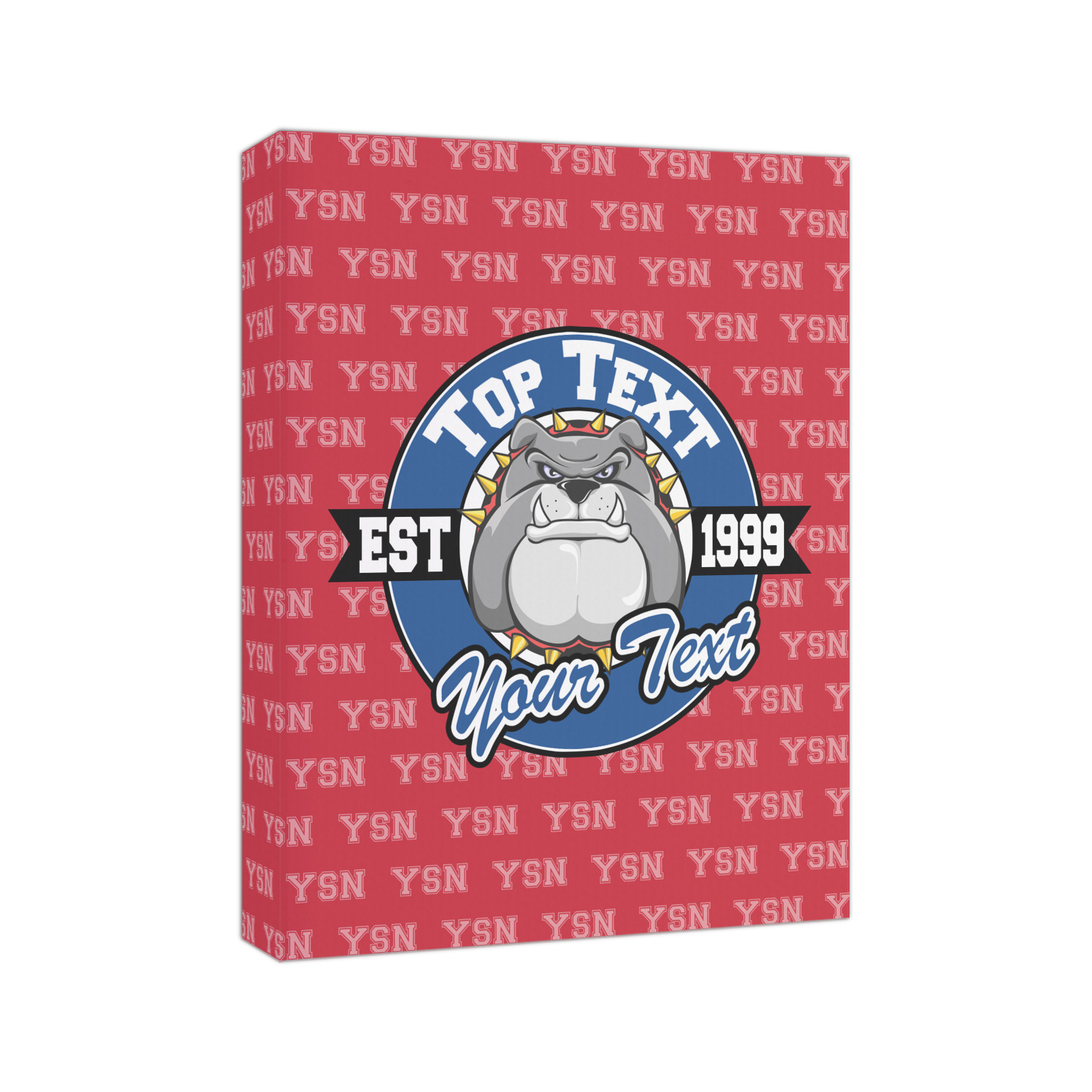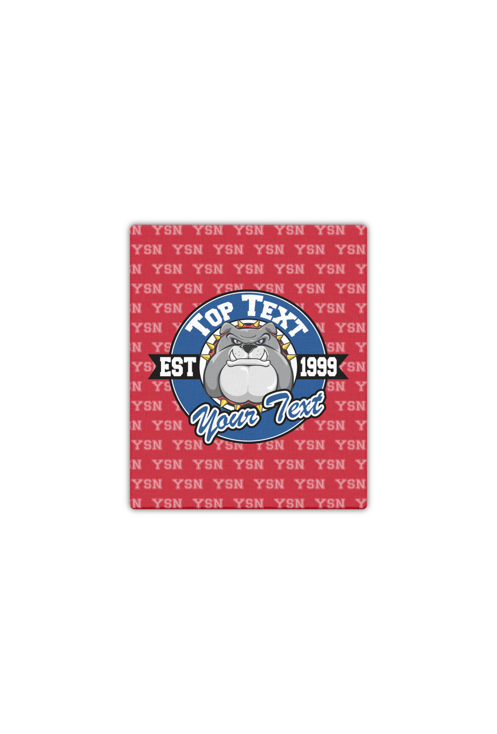 For products that use the background, let's start with the background - we show your school's initials on the red background. You can change the color of the background to your school color, you can change the initial to your school's initial. We also have a background with the mascot, that would look great on this design. And we have 1000's of patterns (e.g.plaid) that you can also use and recolor to your school colors.