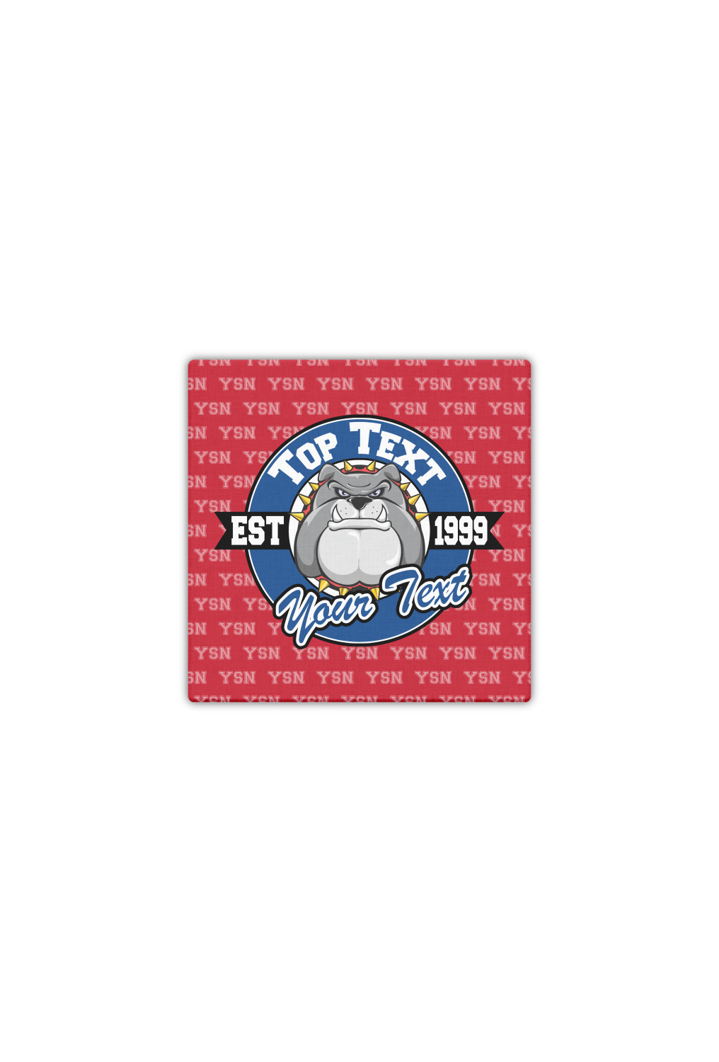 The foreground has a beautiful badge that can be changed to you second school color. There are two locations for the text and one for year your school was established - we recommend putting your High School name on top and your mascot name on the bottom. The mascot face is also customizable. We have 100's of mascots in our system for you to choose from.