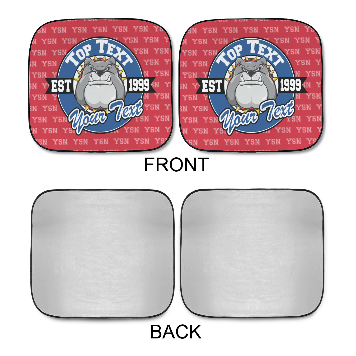 Sold as a pair and with your design printed on the front and the back having a reflective silver material these are sure to reduce the temperature of the inside of your car and keep UV rays from prematurely wearing your dash and interior panels. You have the option of both being the same design or design them separately for a unique look that will have all of your friends asking where you got your car windshield sun shades.