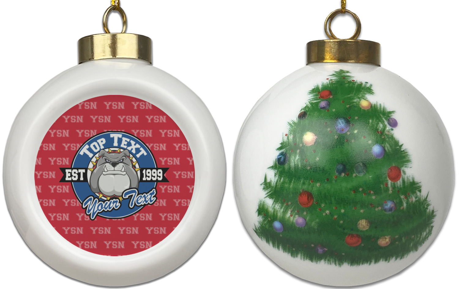 Our Christmas ornaments are a unique ceramic ball shape with a twist as it has a flat face to display your custom design! Select from one of our two design types - Christmas Tree or Poinsettia Garland - to adorn the curved back of your personal design. Each ornament measures 3H x 2.5W x 2D accompanied with a gold string accent for finishing touches to hang on your beautiful Christmas tree!
