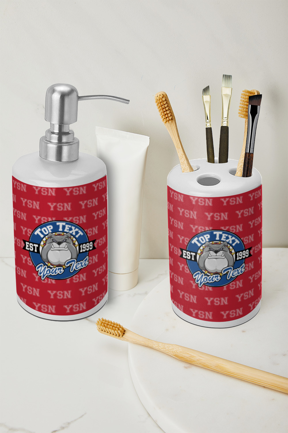 This two piece, ceramic bathroom set will add the perfect splash of color to any bathroom. This set includes one pump dispenser, ideal for soap or lotion, and one toothbrush holder with four holes. Although originally designed for toothbrushes, the holder will also hold make-up brushes, nail files, and other bathroom tools.