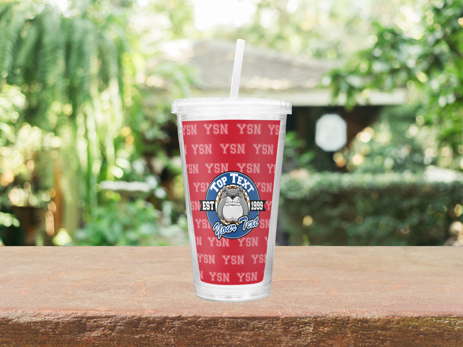 These tumblers are customized for you with a printed insert between the two walls of the cup. The lid screws on tight and helps to keep your drink cold.