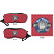 The cases have the design on both sides, a black zipper, and clips for hanging on a belt buckle or purse strap and also include matching lens cloths.