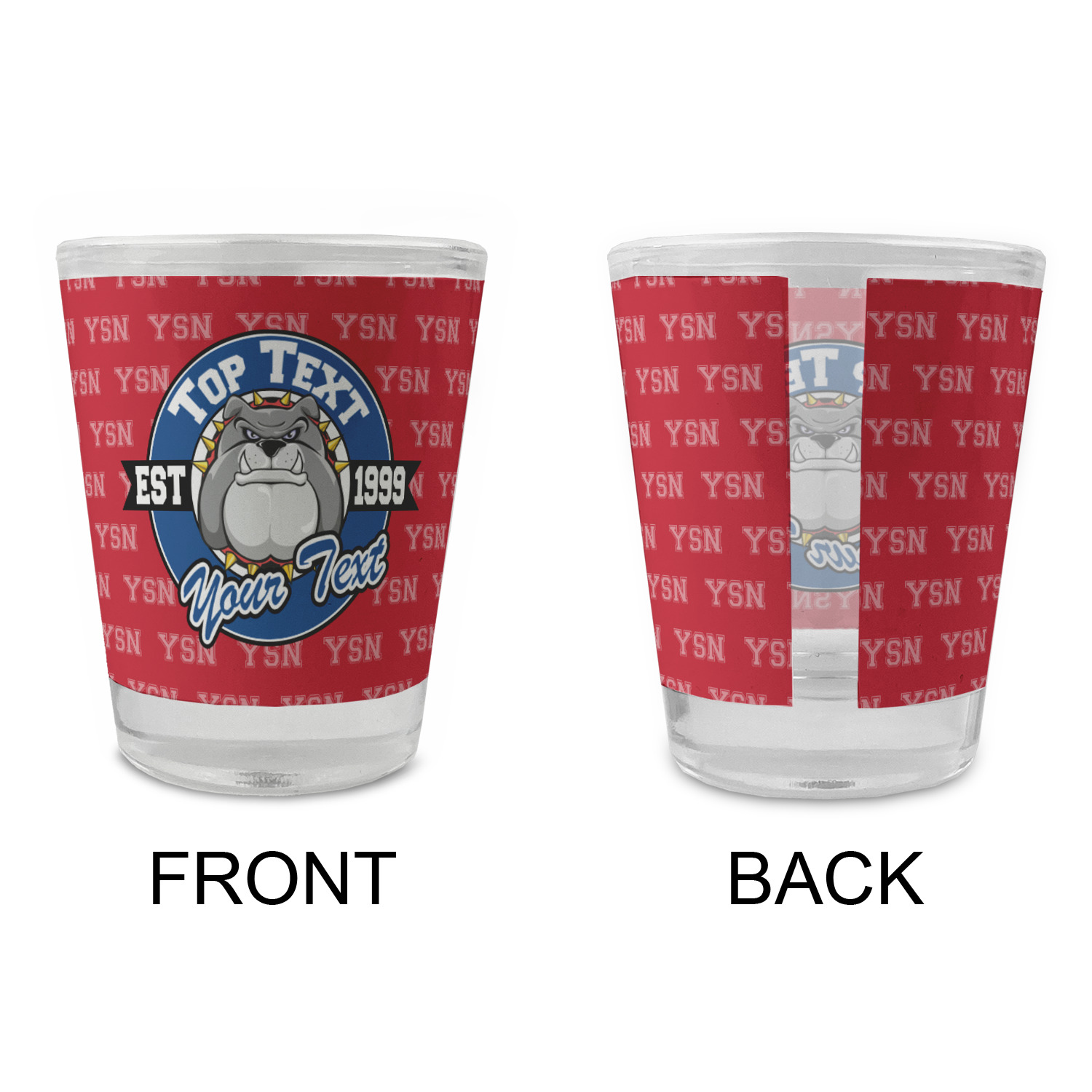 Made with frosted glass, these shot glasses are printed in full color with the design of your choice. They are a standard 1.5oz shot glass and are 2.4" tall. The print is wrapped around the shot glass in a full wrap and boldly displays your customization.