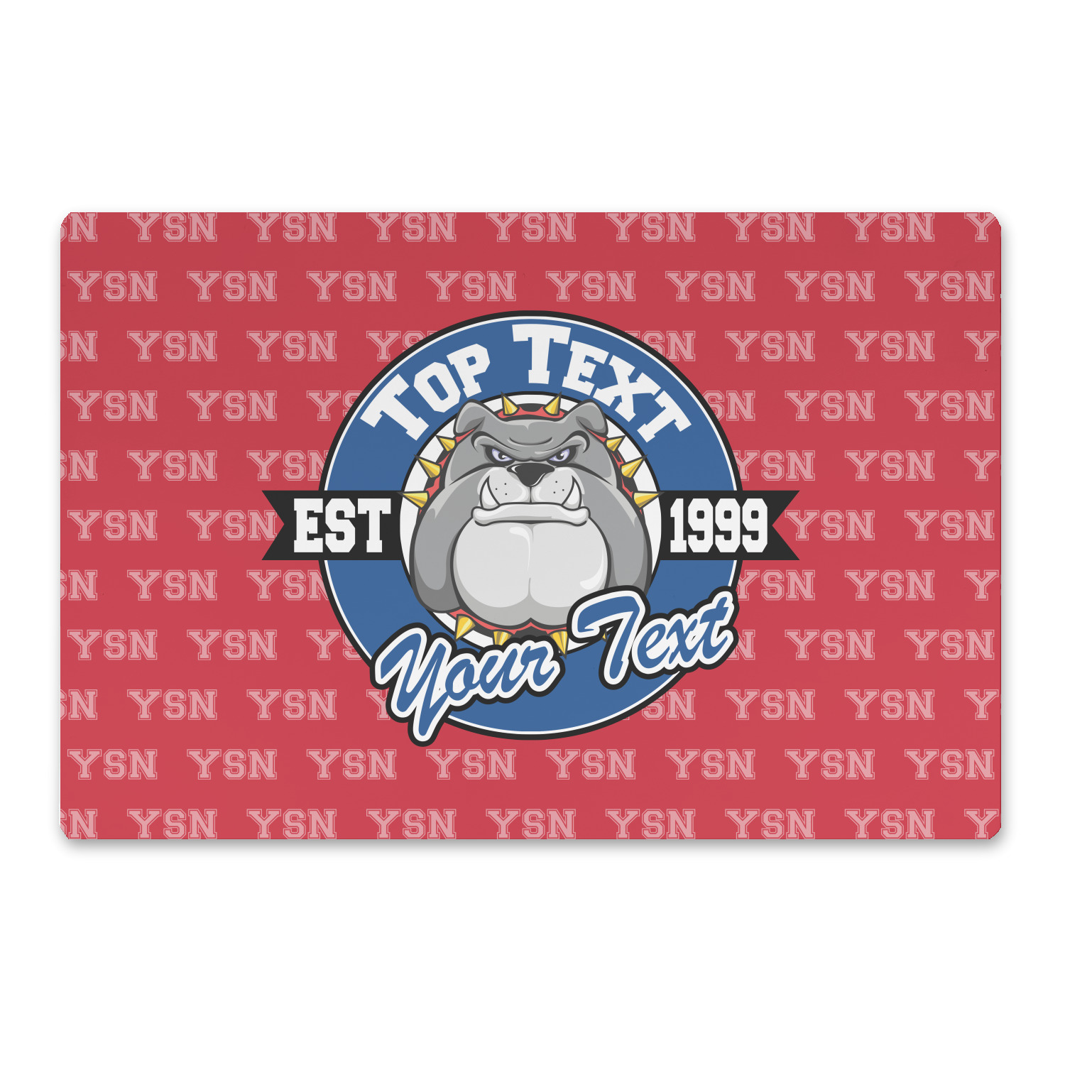 The foreground has a beautiful badge that can be changed to you second school color. There are two locations for the text and one for year your school was established - we recommend putting your High School name on top and your mascot name on the bottom. The mascot face is also customizable. We have 100's of mascots in our system for you to choose from.