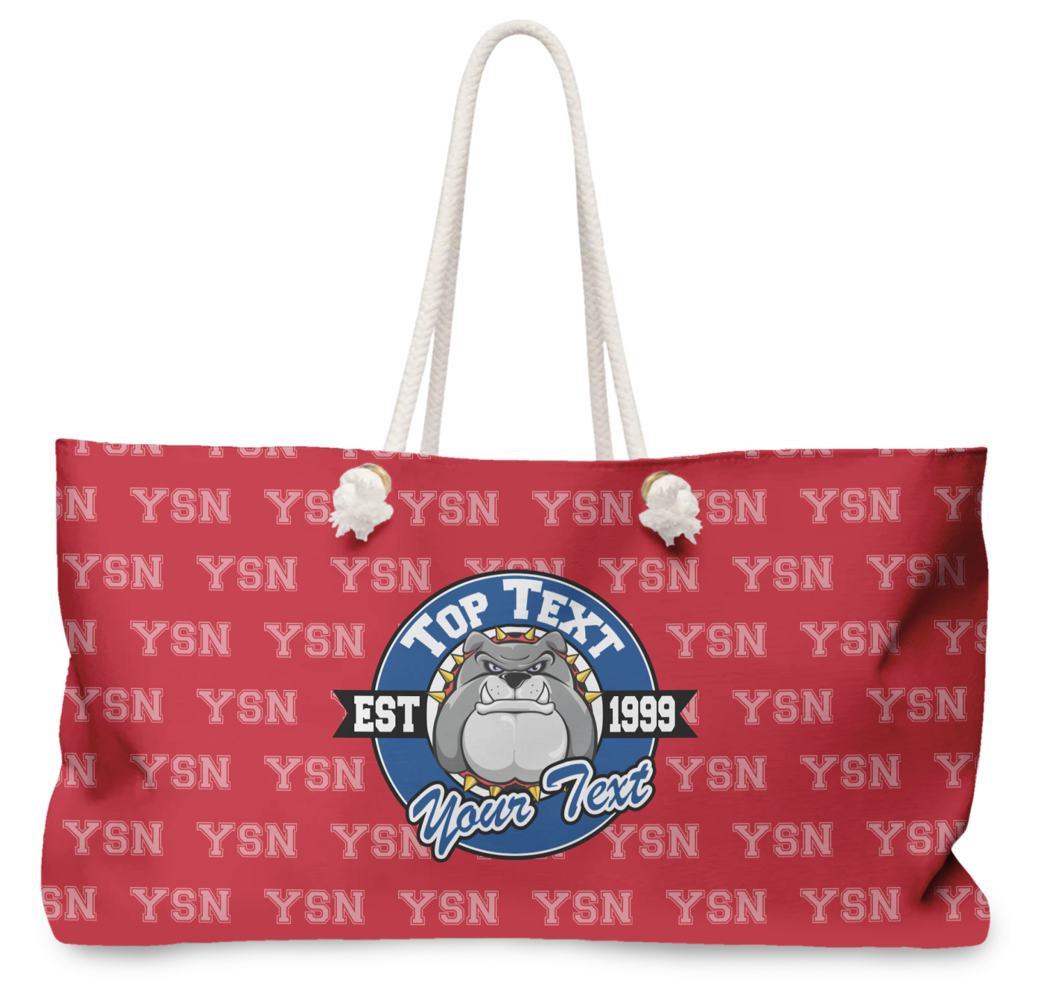 Our oversized weekender tote with rope handles is perfect for your weekend at the beach or on the town. This large tote are 24" W X 13" H, with a 5" gusset and a 27" thick rope handles with a knot that is put through a grommeted brass hole.