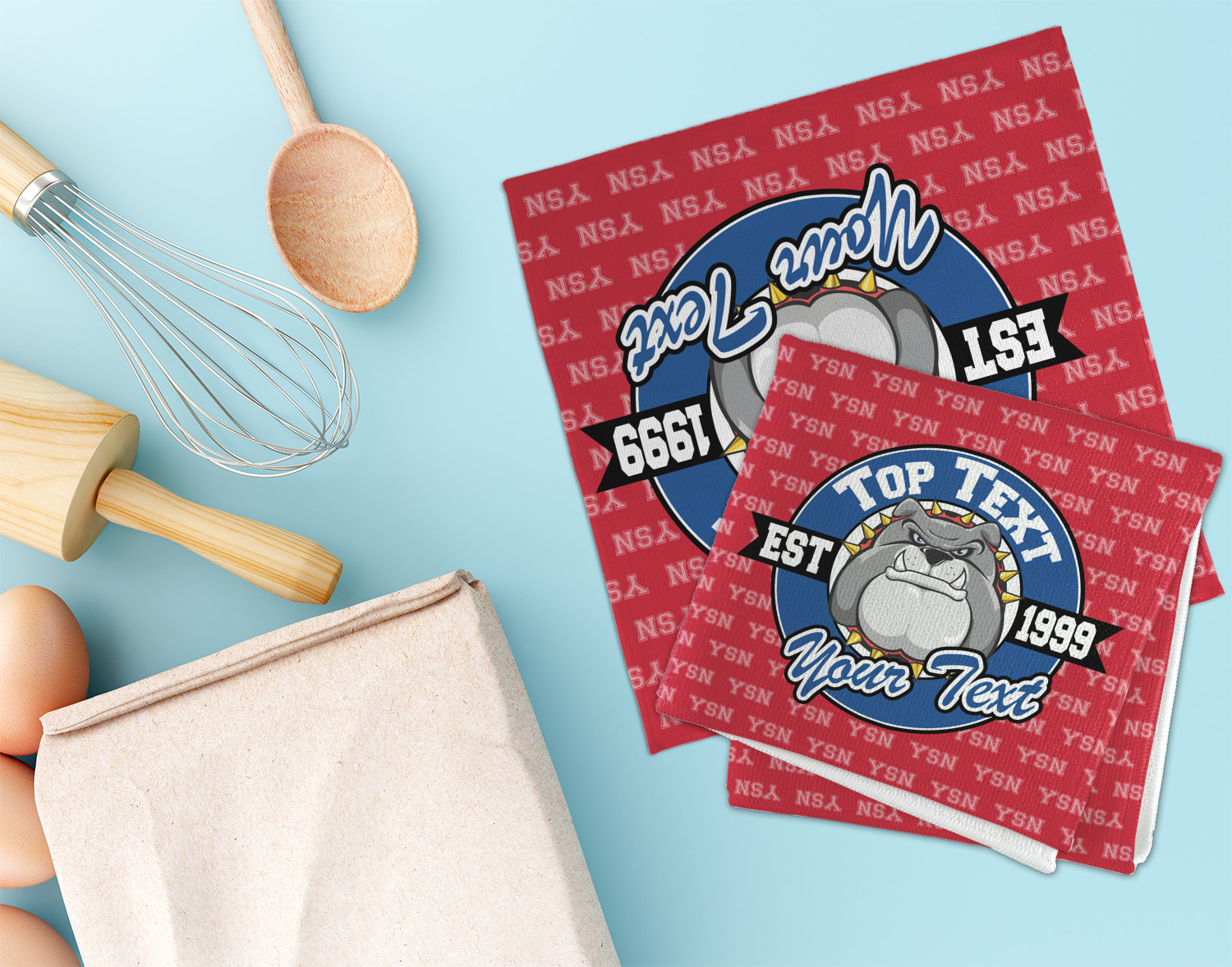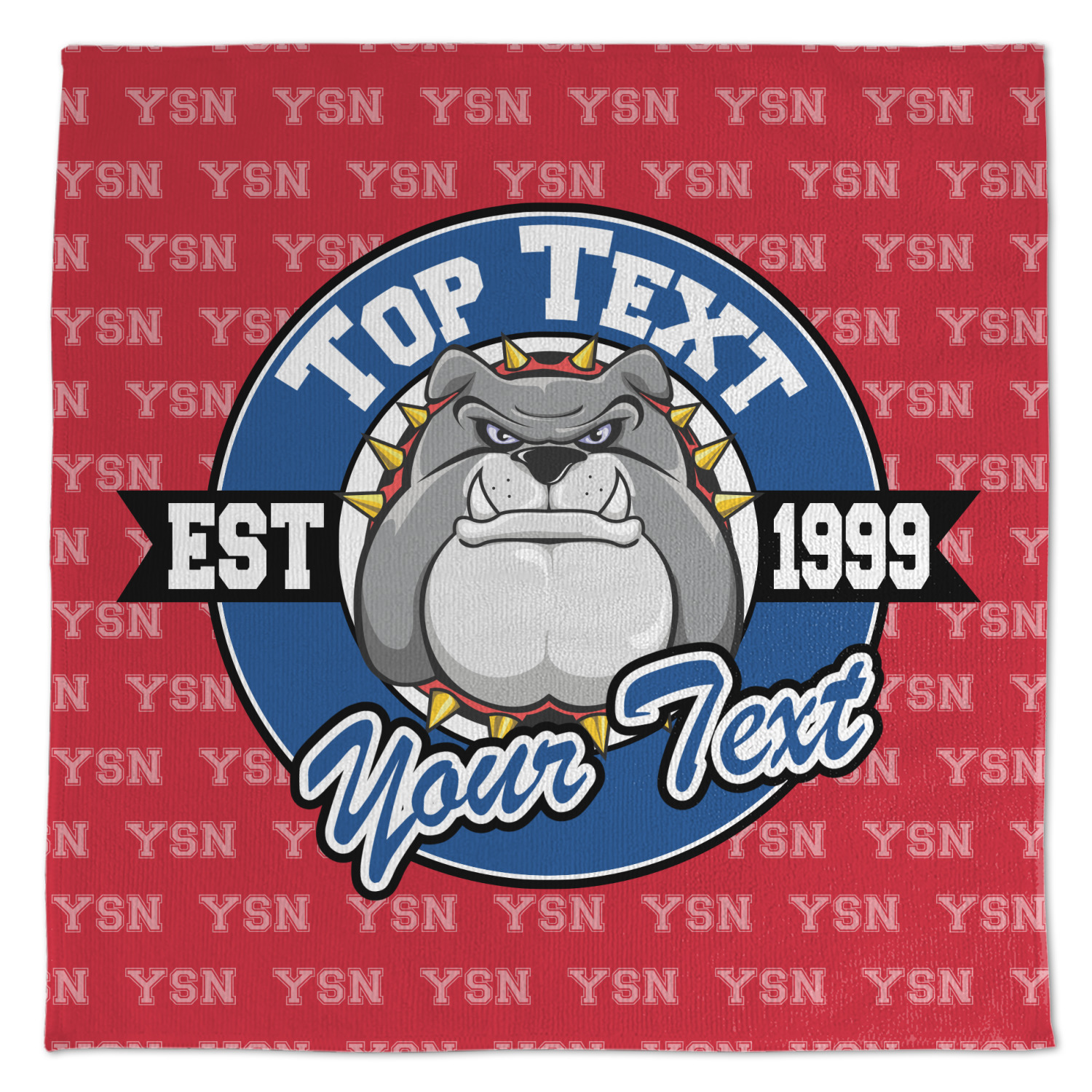 For products that use the background, let's start with the background - we show your school's initials on the red background. You can change the color of the background to your school color, you can change the initial to your school's initial. We also have a background with the mascot, that would look great on this design. And we have 1000's of patterns (e.g.plaid) that you can also use and recolor to your school colors.