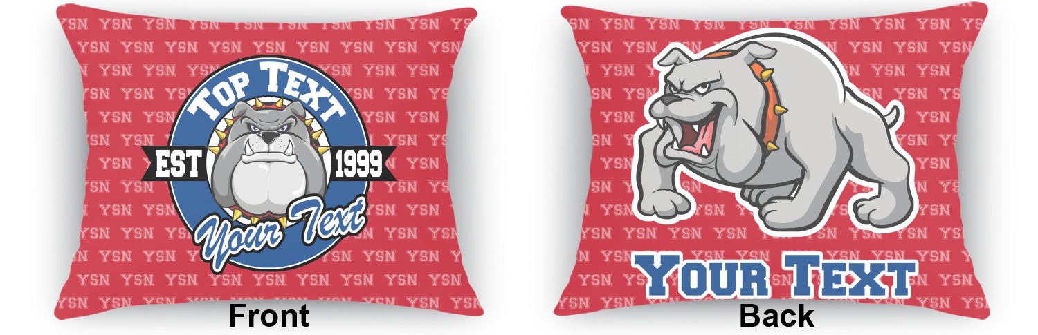 For products that use the background, let's start with the background - we show your school's initials on the red background. You can change the color of the background to your school color, you can change the initial to your school's initial. We also have a background with the mascot, that would look great on this design. And we have 1000's of patterns (e.g.plaid) that you can also use and recolor to your school colors.