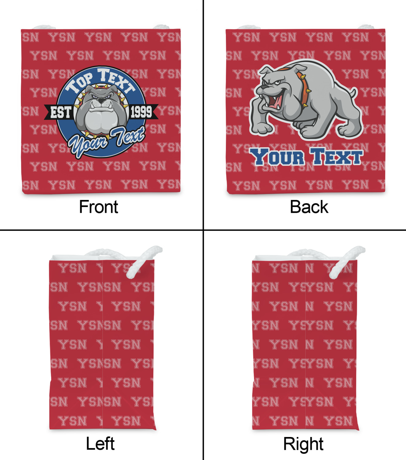 For products that use the background, let's start with the background - we show your school's initials on the red background. You can change the color of the background to your school color, you can change the initial to your school's initial. We also have a background with the mascot, that would look great on this design. And we have 1000's of patterns (e.g.plaid) that you can also use and recolor to your school colors.