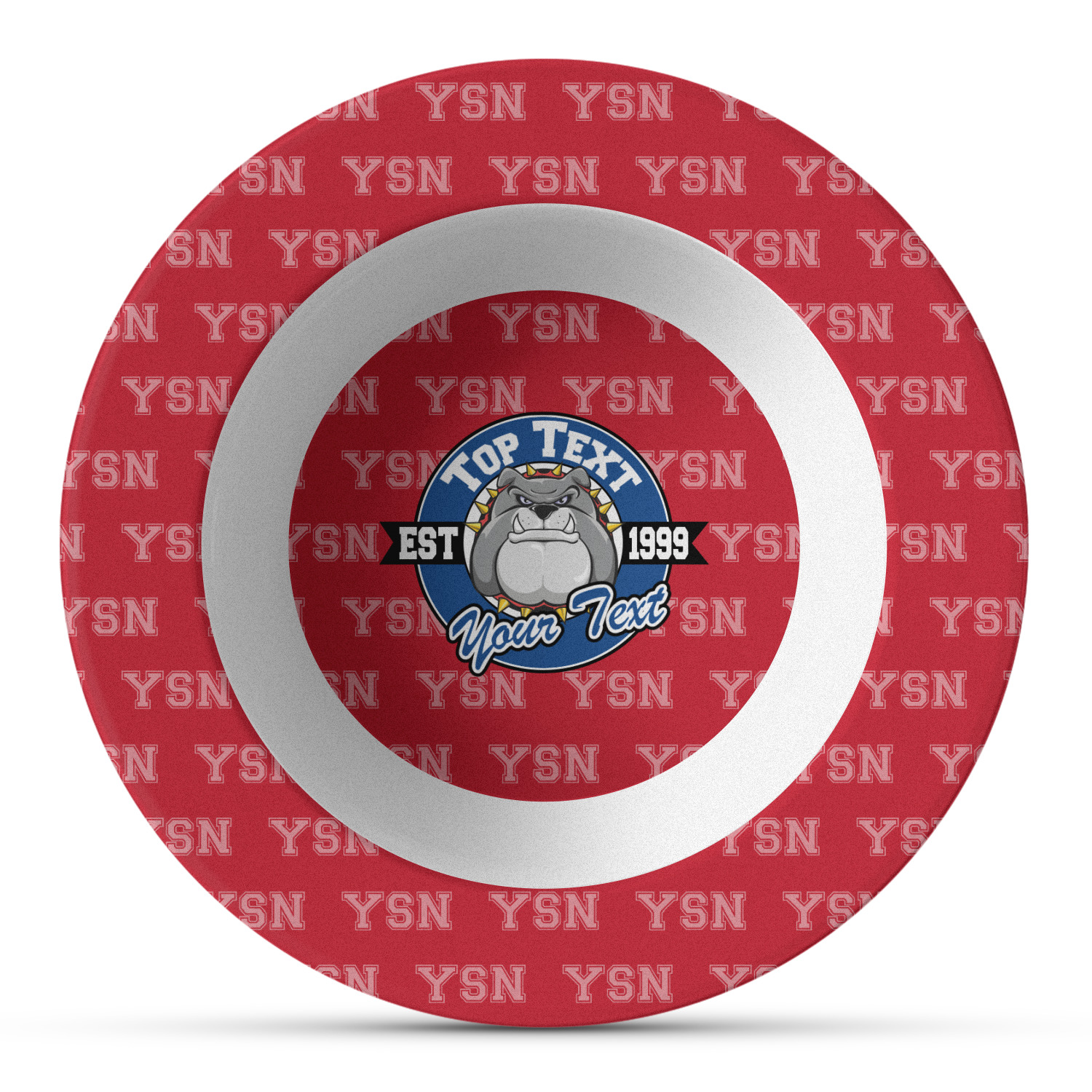 Made from a composite, thermo-set, polymer plastic, these dinner bowls have the versatility, durability, and weight of a melamine bowl without any of the downsides of melamine. Unlike melamine dinnerware, these bowls can withstand high heat. These custom plastic bowls can even handle temperatures of up to 250 degrees Fahrenheit, for up to 60 minutes. The pieces of our plastic dinner set are never made with harmful chemicals, such as BPAs, formaldehyde, DEHPs. We display your personalization on the base of this bowl's interior, while the bowl itself has an 8.75" diameter and is 1.75" tall.