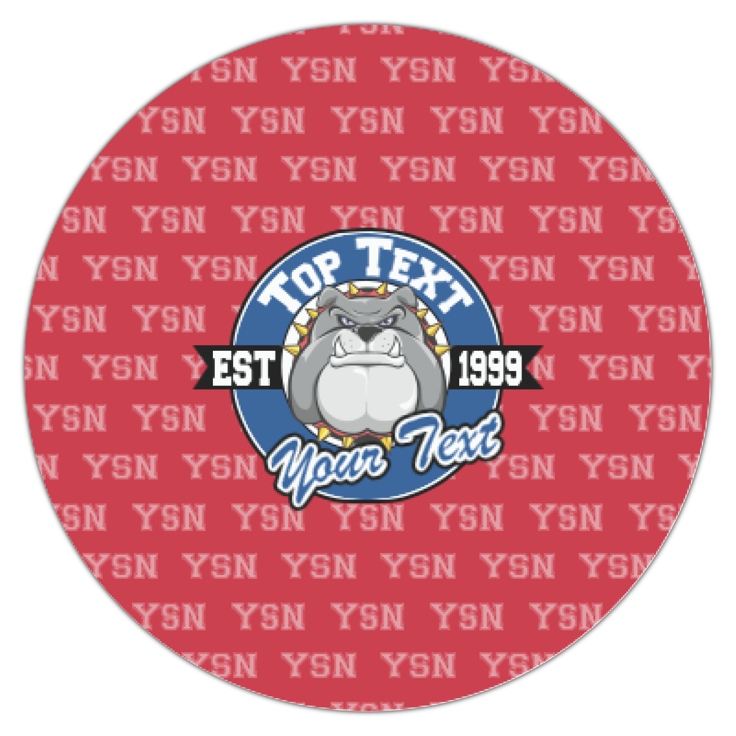 The foreground has a beautiful badge that can be changed to you second school color. There are two locations for the text and one for year your school was established - we recommend putting your High School name on top and your mascot name on the bottom. The mascot face is also customizable. We have 100's of mascots in our system for you to choose from.