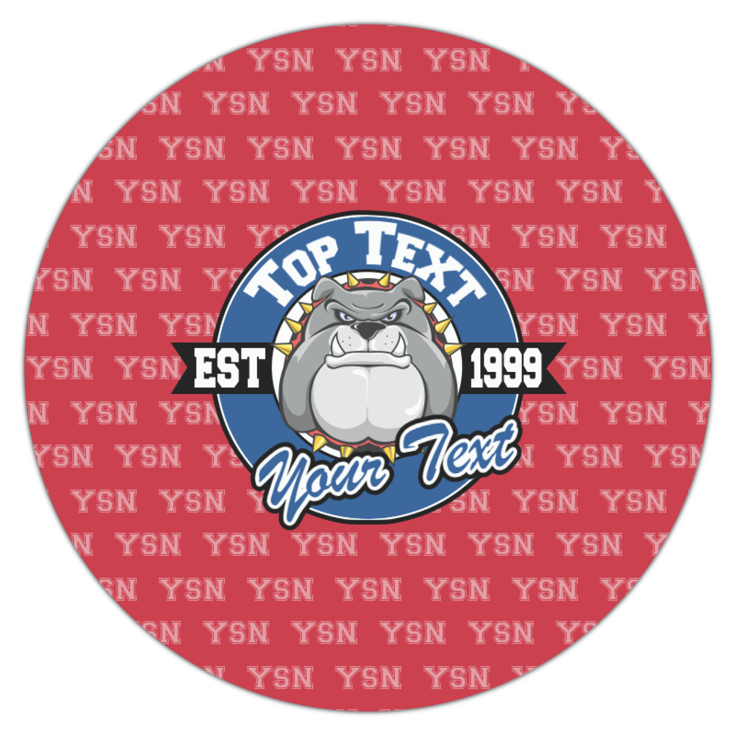The foreground has a beautiful badge that can be changed to you second school color. There are two locations for the text and one for year your school was established - we recommend putting your High School name on top and your mascot name on the bottom. The mascot face is also customizable. We have 100's of mascots in our system for you to choose from.