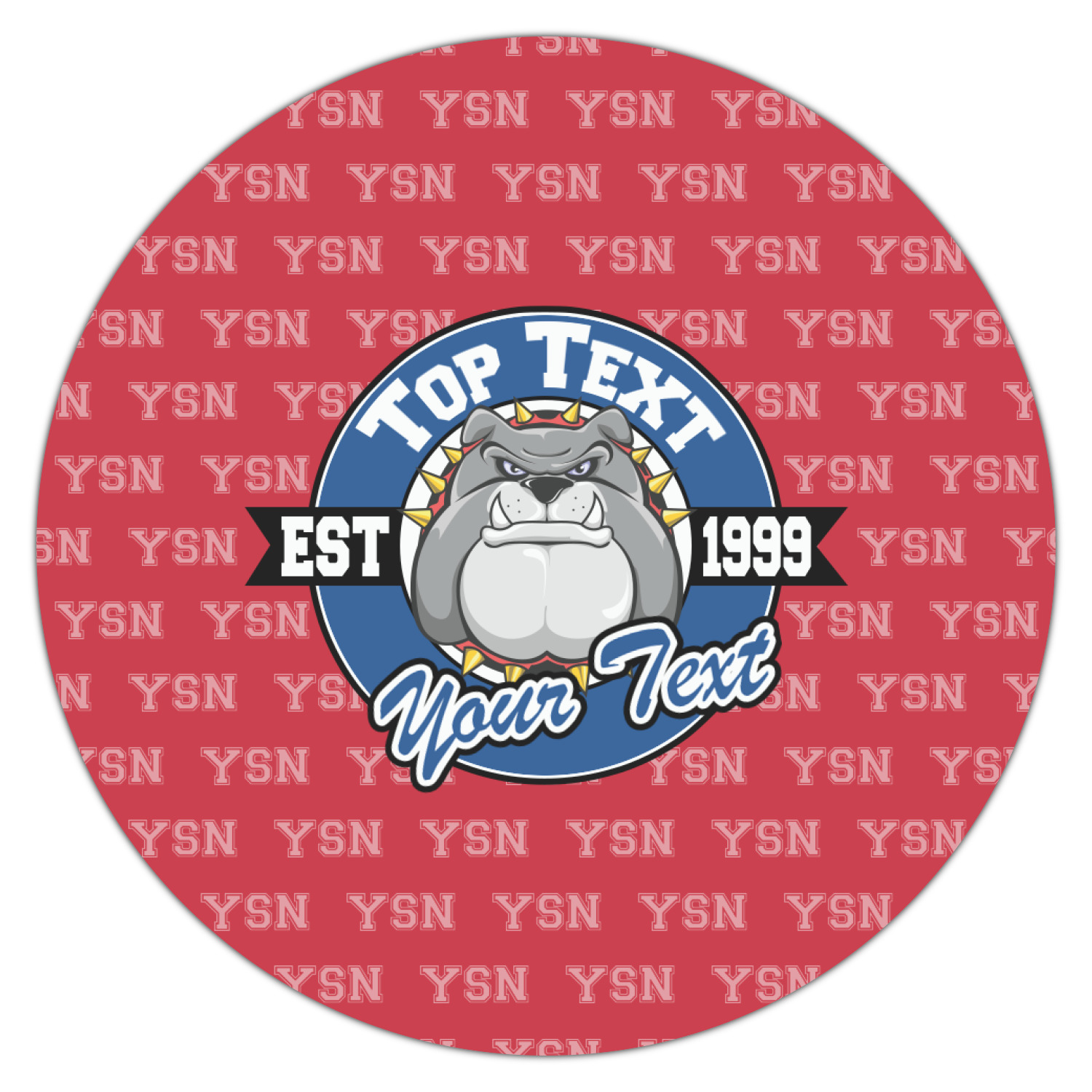 The foreground has a beautiful badge that can be changed to you second school color. There are two locations for the text and one for year your school was established - we recommend putting your High School name on top and your mascot name on the bottom. The mascot face is also customizable. We have 100's of mascots in our system for you to choose from.
