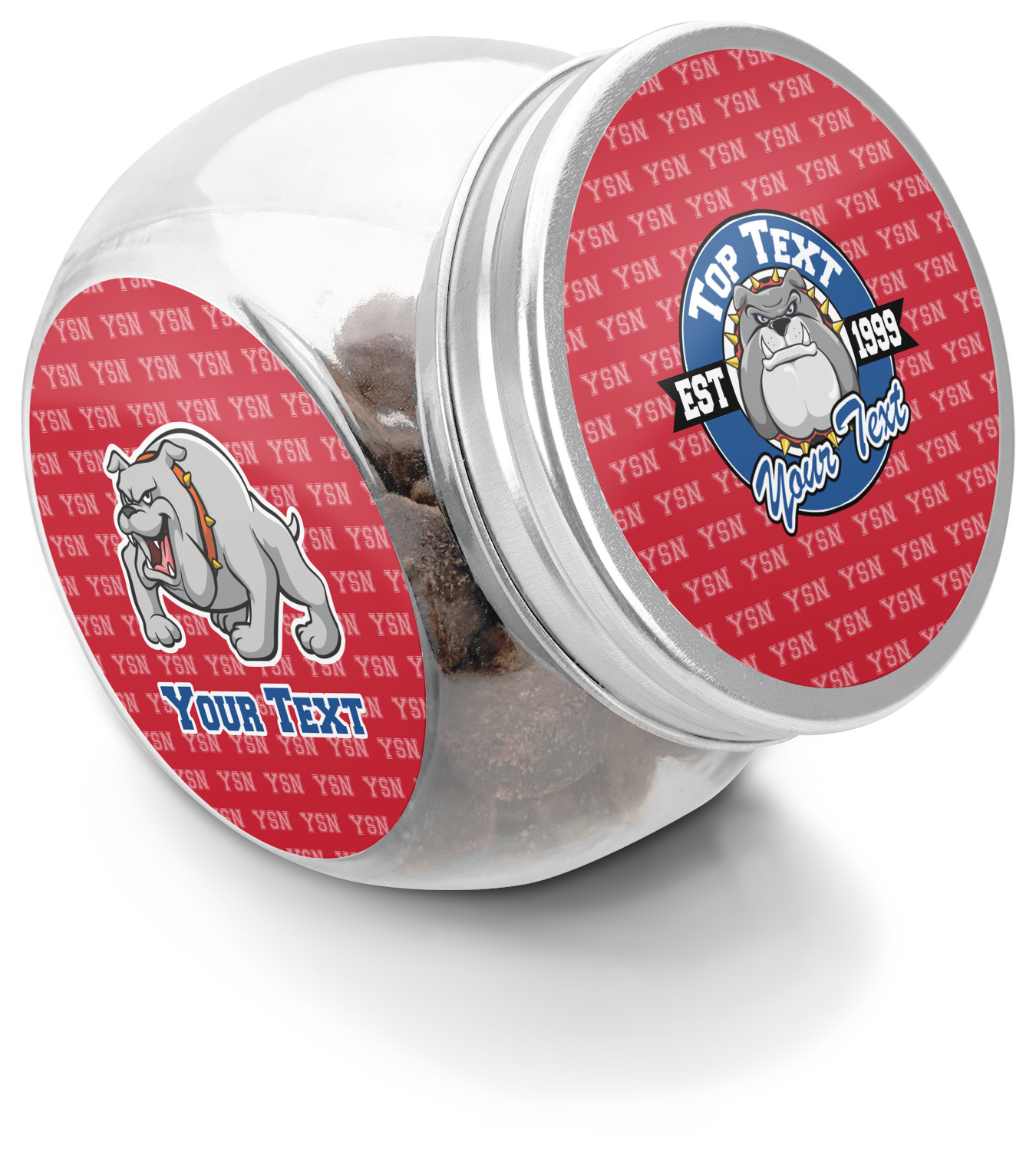 Pleased with your customized design? Perhaps purchase a matching dog food bowl, dog food mat, or even another, larger dog treat jar! Check out our Pet Accessories Department for even more gift options for your puppy.