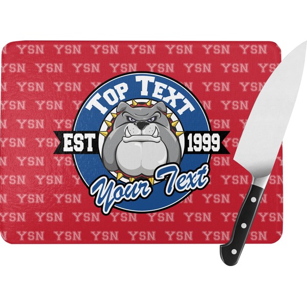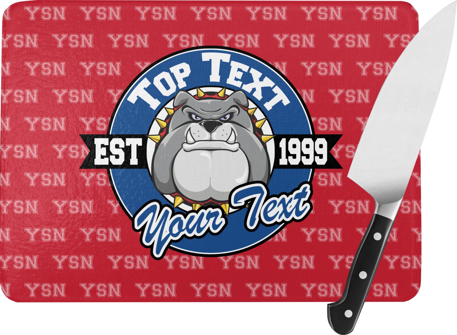 For products that use the background, let's start with the background - we show your school's initials on the red background. You can change the color of the background to your school color, you can change the initial to your school's initial. We also have a background with the mascot, that would look great on this design. And we have 1000's of patterns (e.g.plaid) that you can also use and recolor to your school colors.