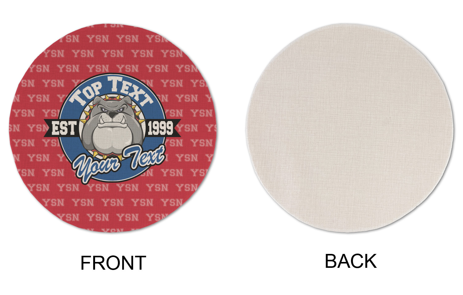 For products that use the background, let's start with the background - we show your school's initials on the red background. You can change the color of the background to your school color, you can change the initial to your school's initial. We also have a background with the mascot, that would look great on this design. And we have 1000's of patterns (e.g.plaid) that you can also use and recolor to your school colors.