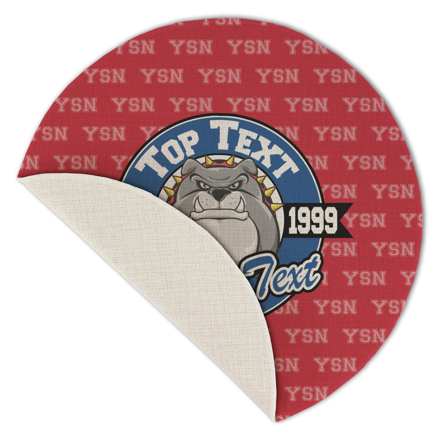 The foreground has a beautiful badge that can be changed to you second school color. There are two locations for the text and one for year your school was established - we recommend putting your High School name on top and your mascot name on the bottom. The mascot face is also customizable. We have 100's of mascots in our system for you to choose from.