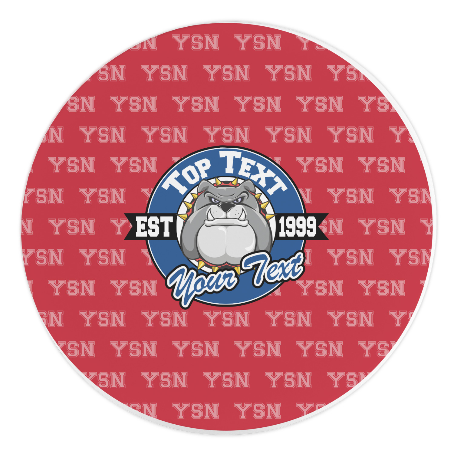 For products that use the background, let's start with the background - we show your school's initials on the red background. You can change the color of the background to your school color, you can change the initial to your school's initial. We also have a background with the mascot, that would look great on this design. And we have 1000's of patterns (e.g.plaid) that you can also use and recolor to your school colors.