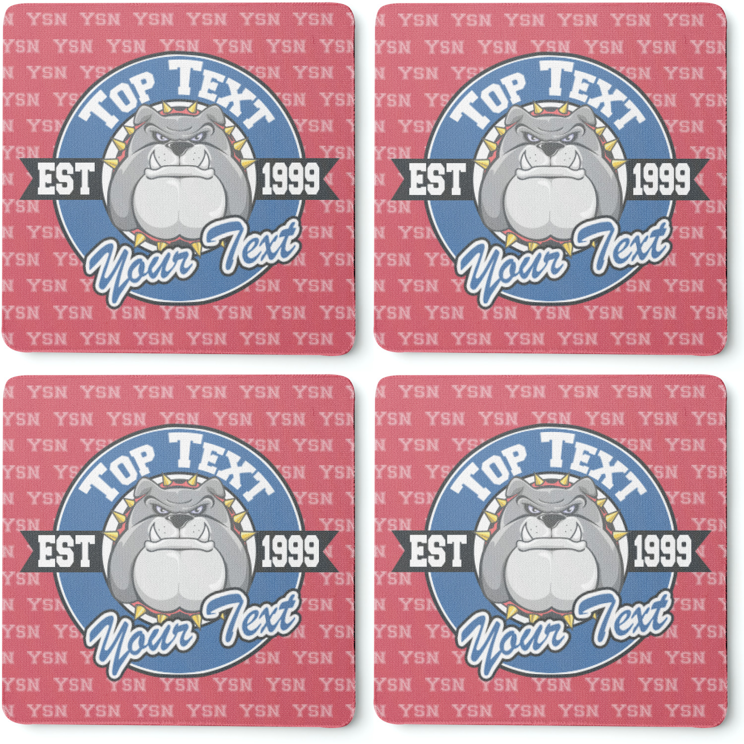 These drink coasters have a smooth, polyester top and a textured, rubber backing on its bottom. The non-slip rubber backing underneath works to keep any spills at bay. At 4 by 4 by 0.25 inches thick, these custom coasters are a suitable size for most drinkware. Your personalization is displayed atop the face of the cup coaster. We sell these rubber coasters in two different shapes: square and round. You can buy each shape as singulars or as a set of 4.