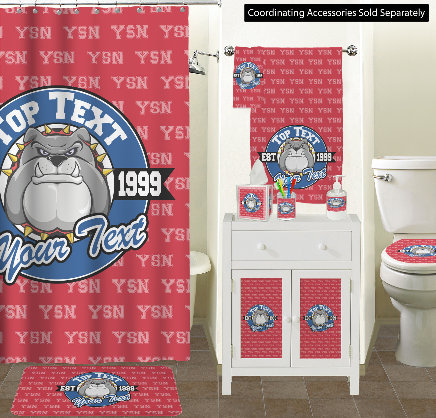 For products that use the background, let's start with the background - we show your school's initials on the red background. You can change the color of the background to your school color, you can change the initial to your school's initial. We also have a background with the mascot, that would look great on this design. And we have 1000's of patterns (e.g.plaid) that you can also use and recolor to your school colors.