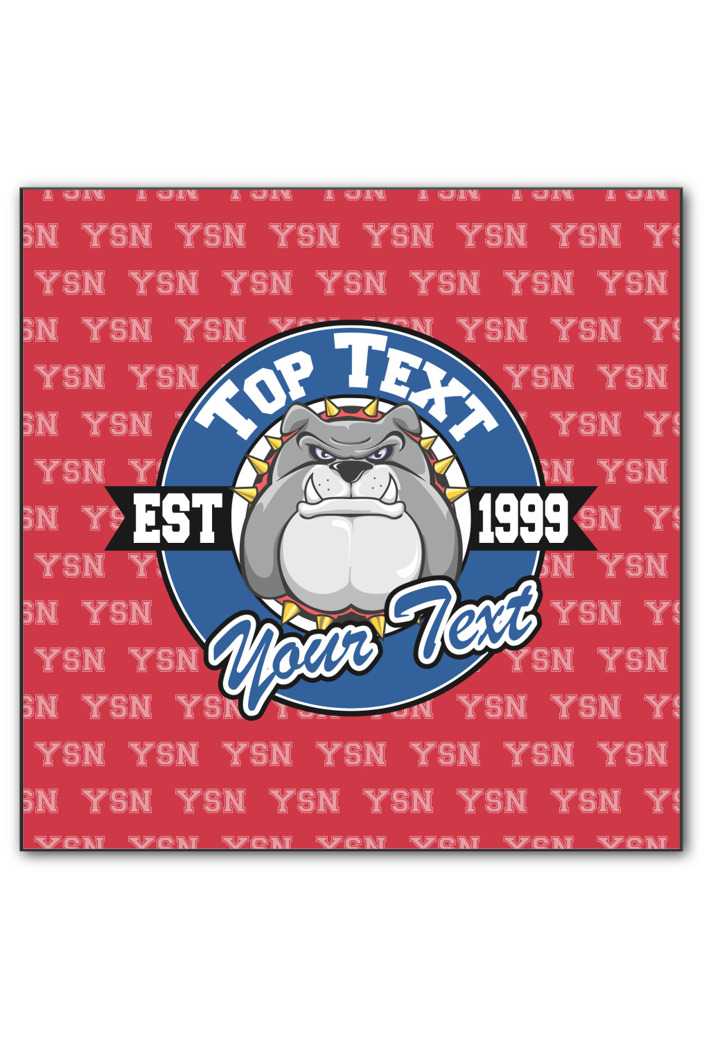The foreground has a beautiful badge that can be changed to you second school color. There are two locations for the text and one for year your school was established - we recommend putting your High School name on top and your mascot name on the bottom. The mascot face is also customizable. We have 100's of mascots in our system for you to choose from.