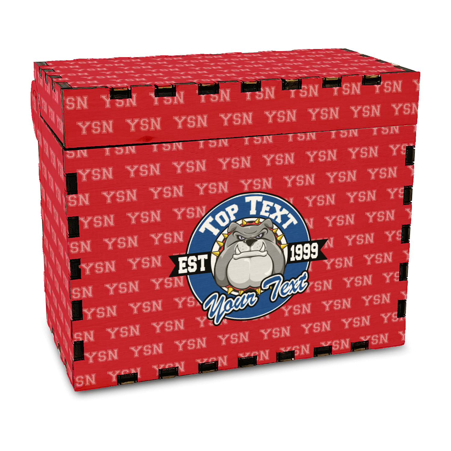 For products that use the background, let's start with the background - we show your school's initials on the red background. You can change the color of the background to your school color, you can change the initial to your school's initial. We also have a background with the mascot, that would look great on this design. And we have 1000's of patterns (e.g.plaid) that you can also use and recolor to your school colors.